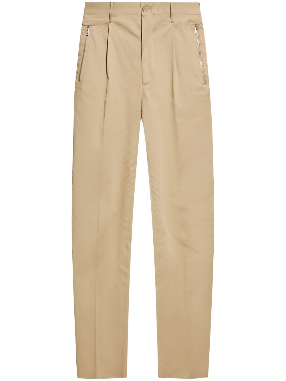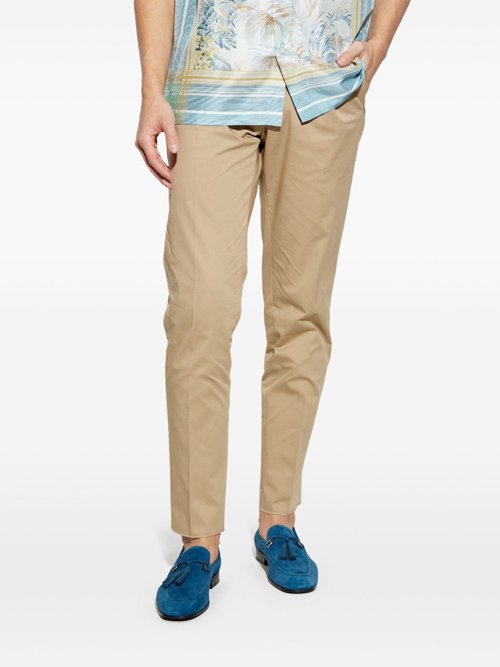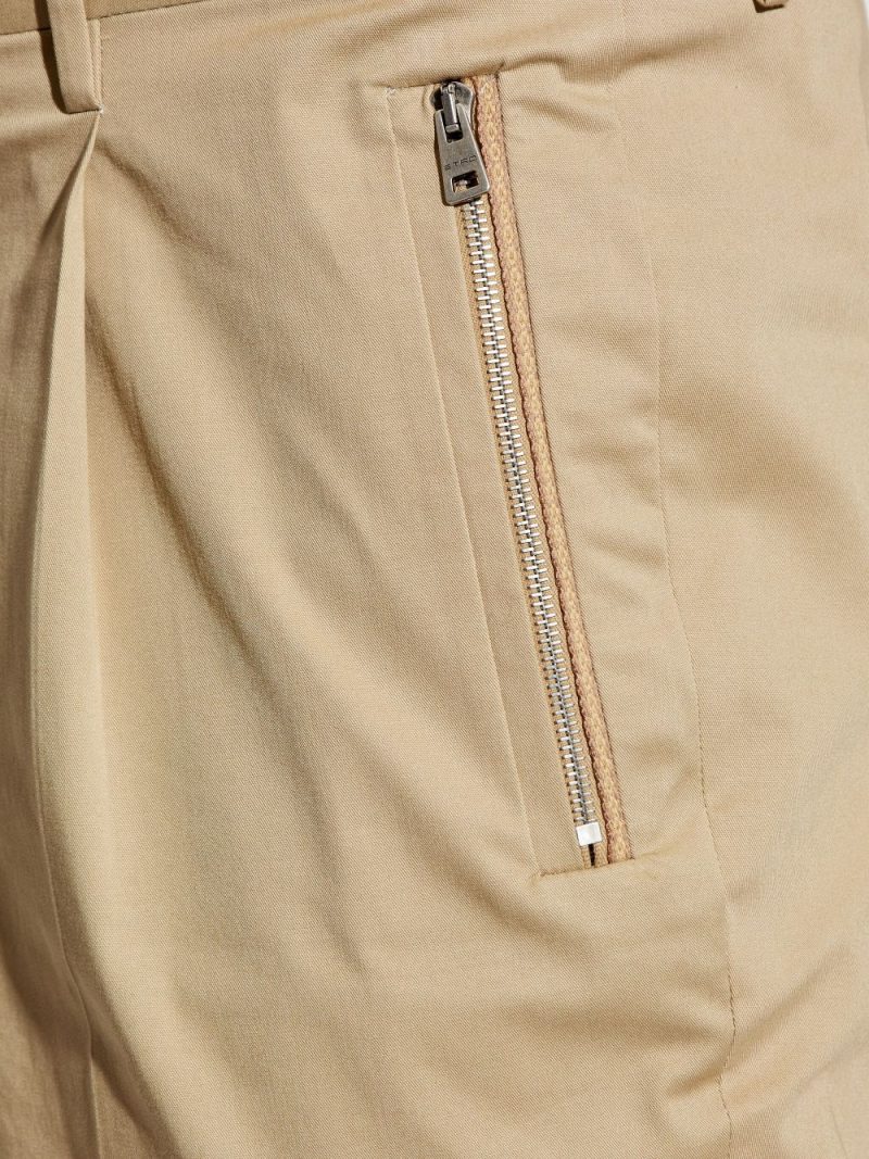 Pantaloni ETRO Cotton bej, din bumbac, cu inchidere nasture si fermoar, buzunare laterale cu inchidere zip, detalii plisate, dunga verticala si tiv drep. Potriviti pentru sezonul primavara/vara. 100% bumbac.