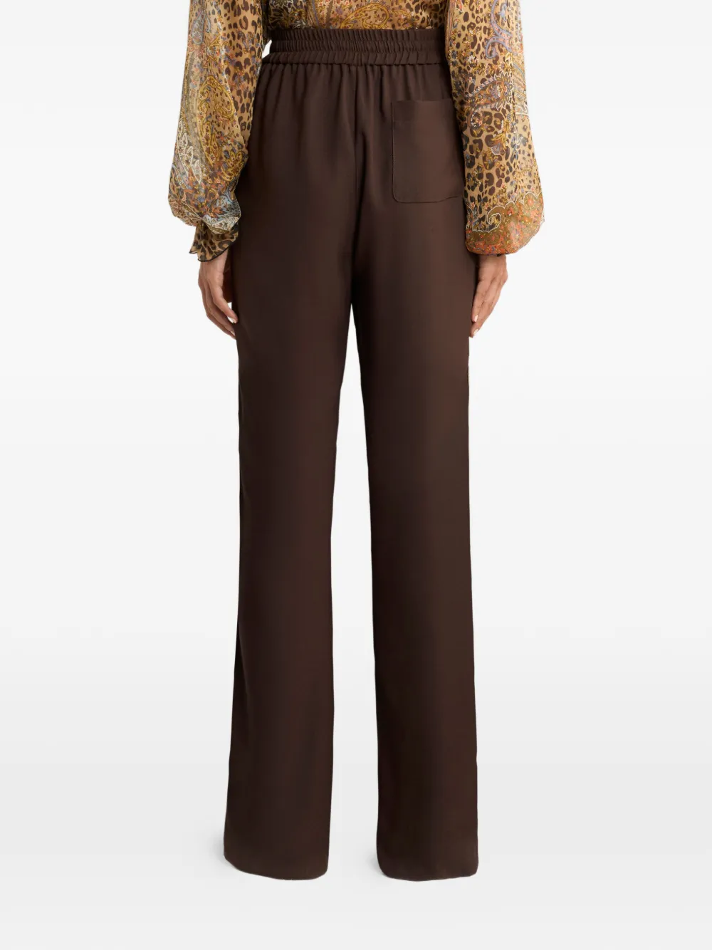 Pantaloni ETRO Drawstring Wide-Leg maro, wide-fit, cu talie elastica si inchidere snur, buzunar aplicat la spate, vipusca decorativa pe laterale si tiv drept. Potriviti pentru sezonul primavara/vara. 100% textil.