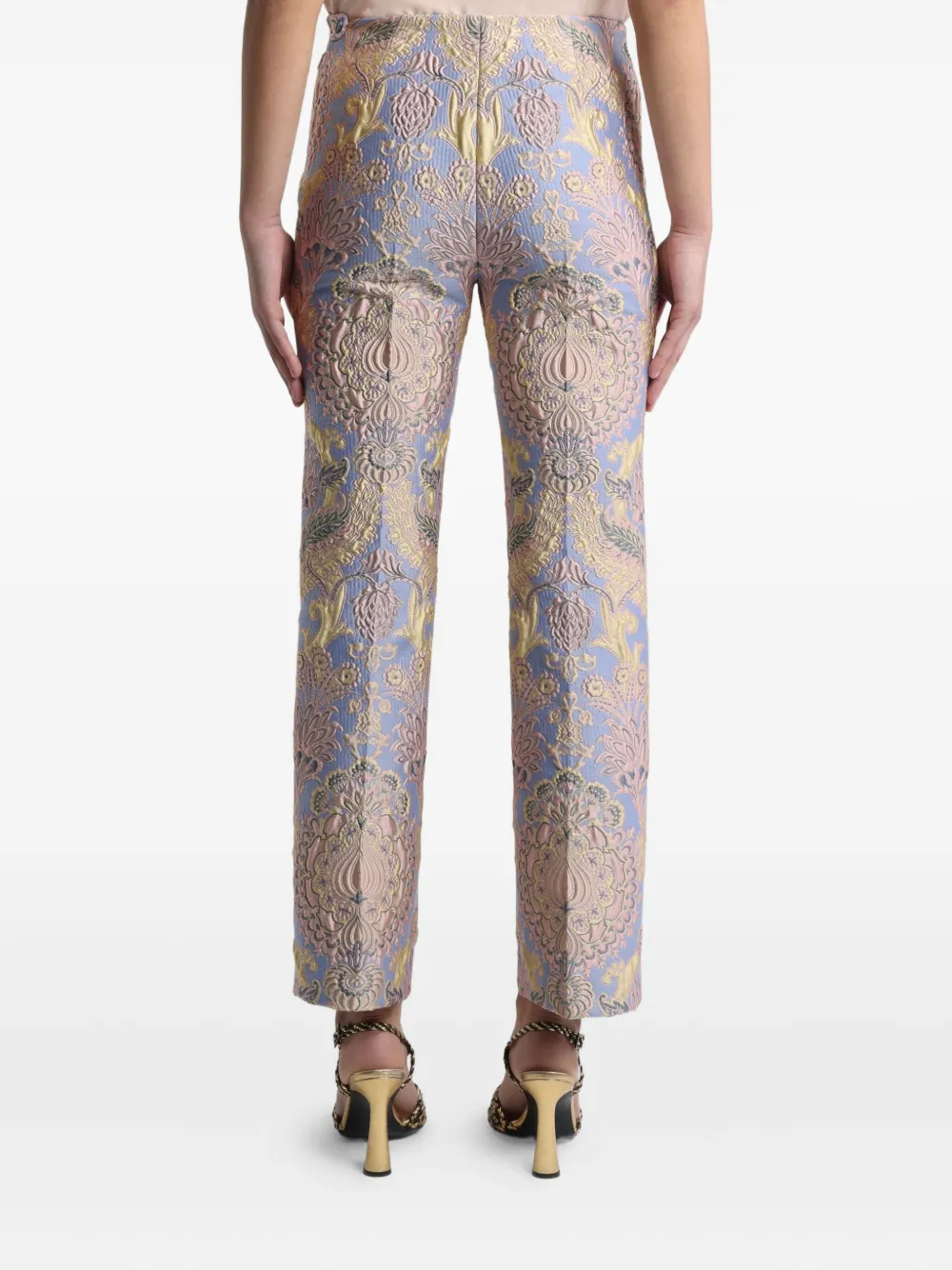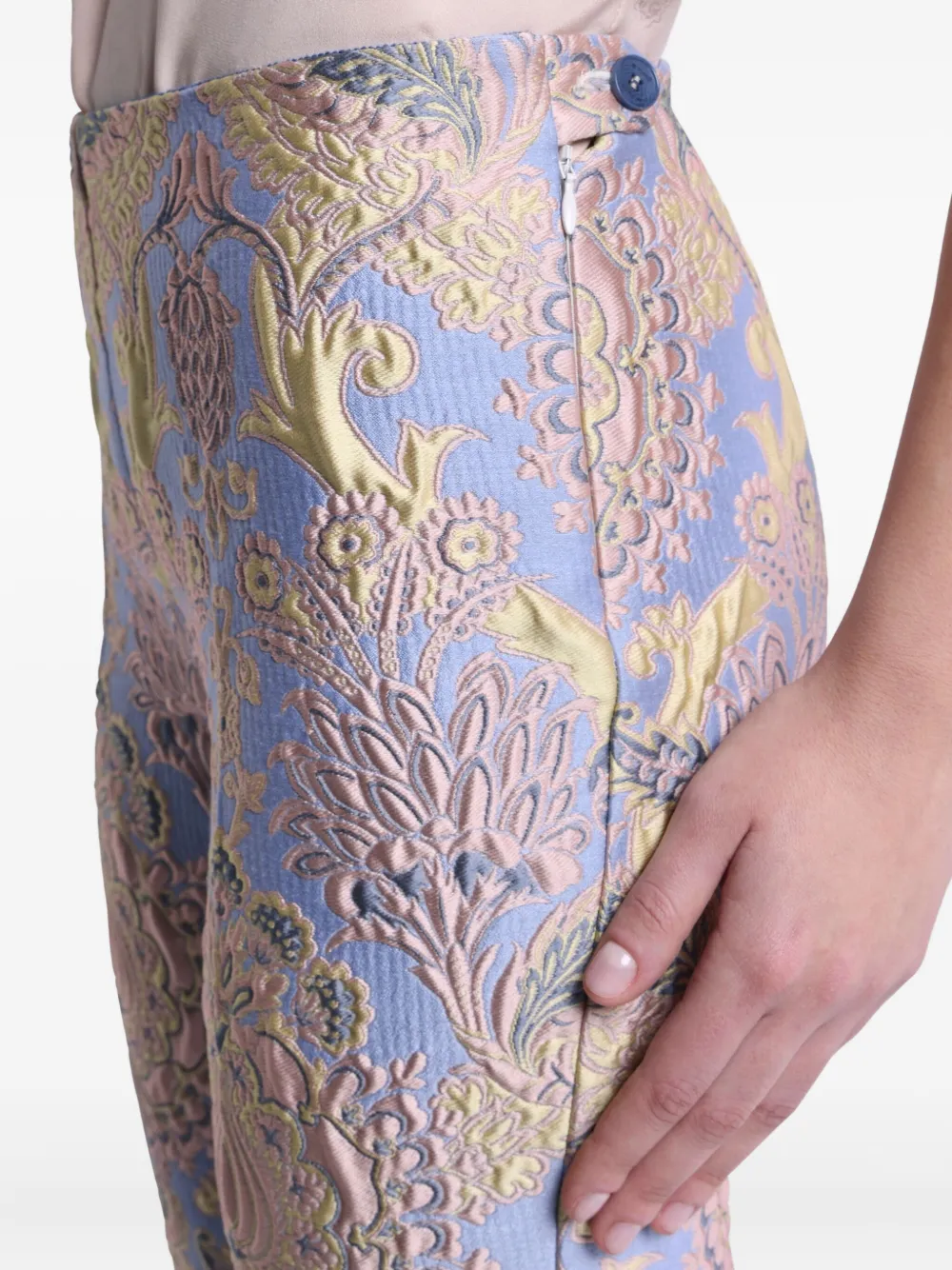 Pantaloni ETRO Floral Jacquard multicolor, din textil, cu talie inalta, inchidere laterala cu fermoar ascuns si nasture, tesatura jacquard, pattern floral si tiv drept. Potriviti pentru sezonul toamna/iarna. 100% textil.