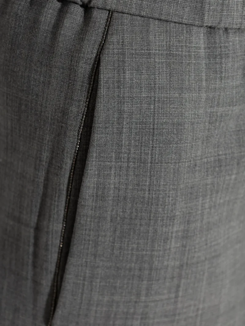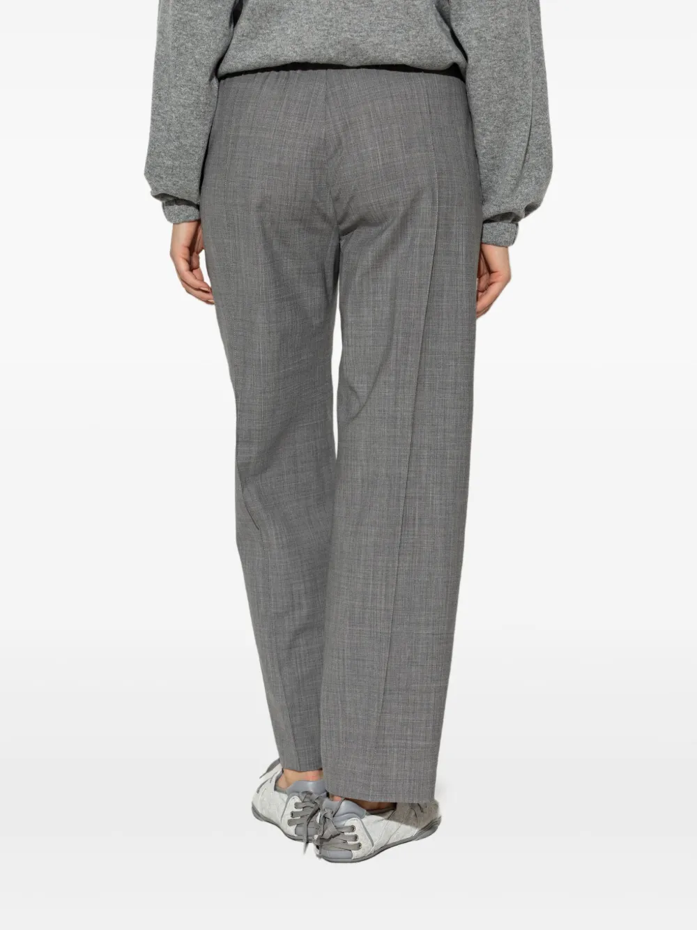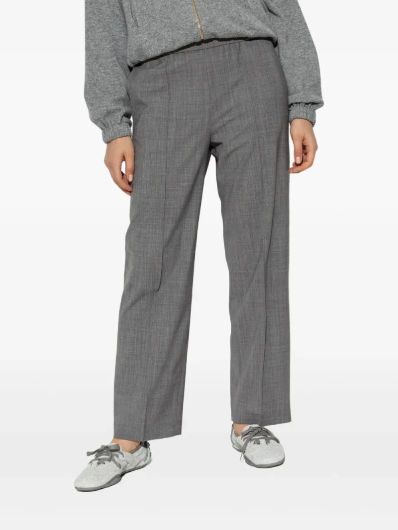 Pantaloni Fabiana Filippi Creased Straight-Leg gri, straght-fit, cu talie elastica, buzunare laterale, dunga verticala si tiv drept. Potriviti pentru sezonul toamna/iarna. 77% viscoza; 23% poliester.