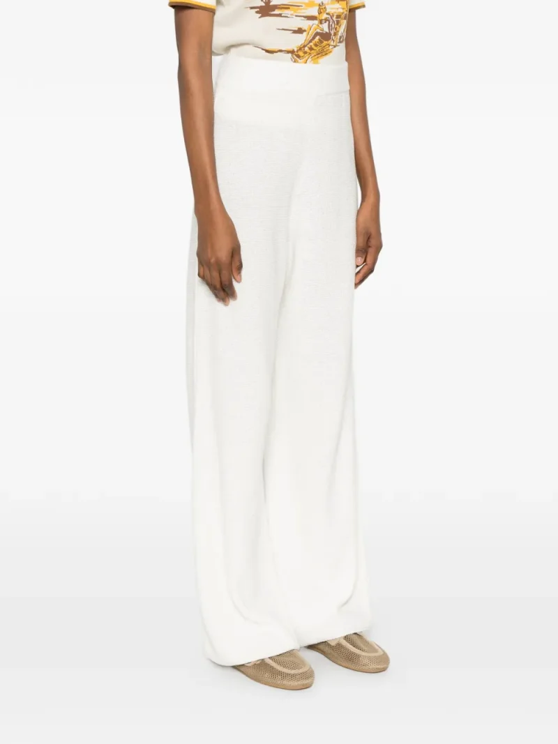 Pantaloni Fabiana Filippi Knitted alb, din bumbac tricot, cu talie elastica., wide fit si testaura ribbed. Potriviti pentru sezonul primavara/vara. 61% bumbac 38% in 1% poliester