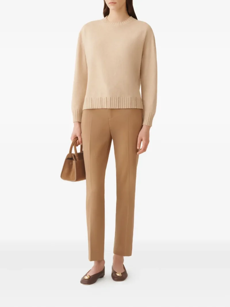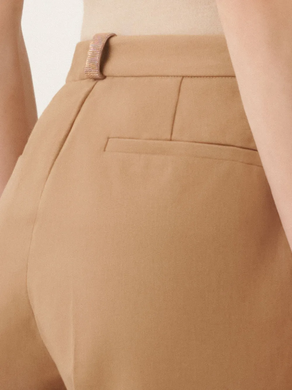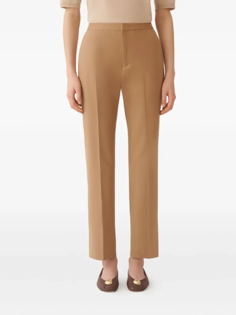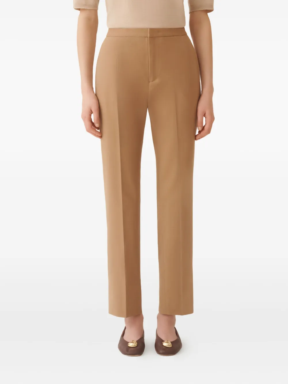 Pantaloni Fabiana Filippi Pleated-Front bej, din textil, cu talie medie, inchidere clasica, buzunare welt la spate si tiv drept. Potriviti pentru sezonul toamna/iarna. 100% textil.