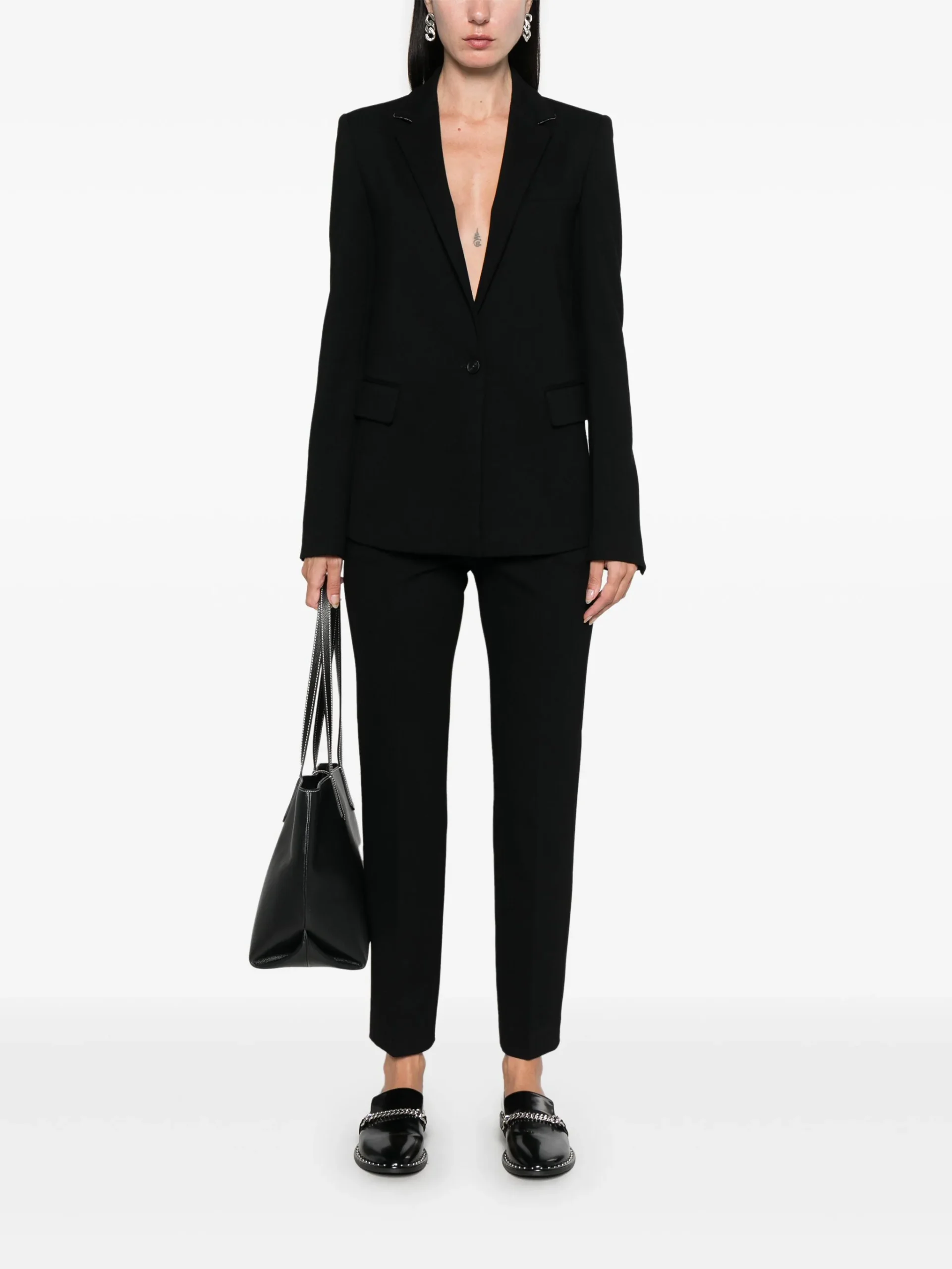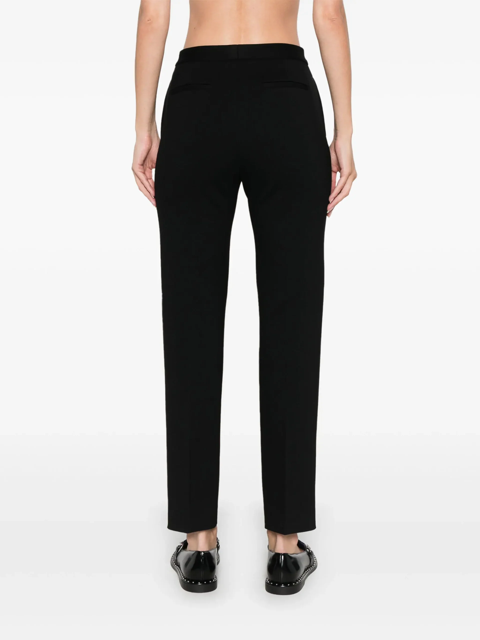 Pantaloni Fabiana Filippi tapered negri, inchidere cu fermoar si nasture, buzunare laterale si la spate si tiv drept. 75% VASCOZA 21% POLIAMIDA 4% ELASTAN
