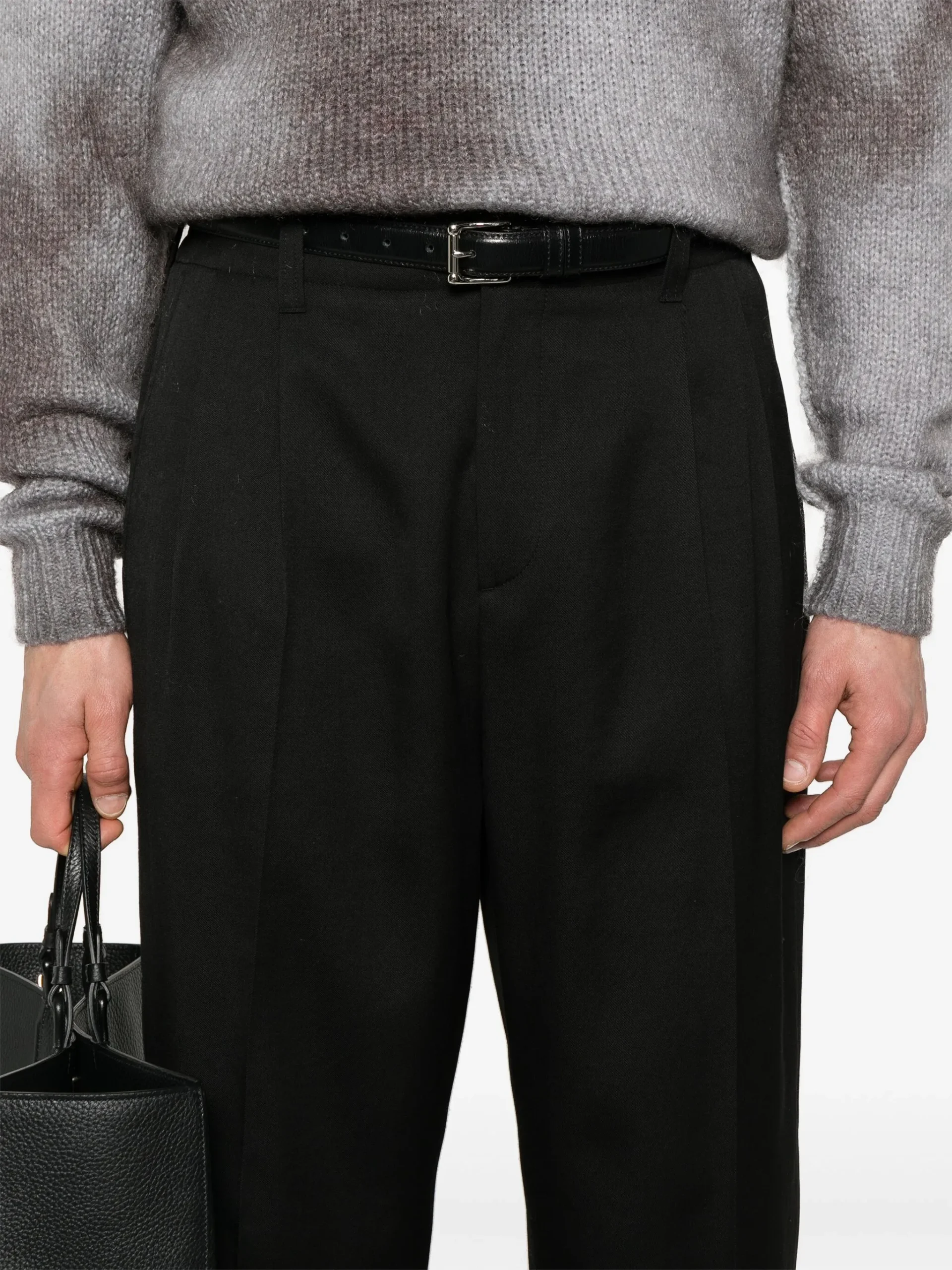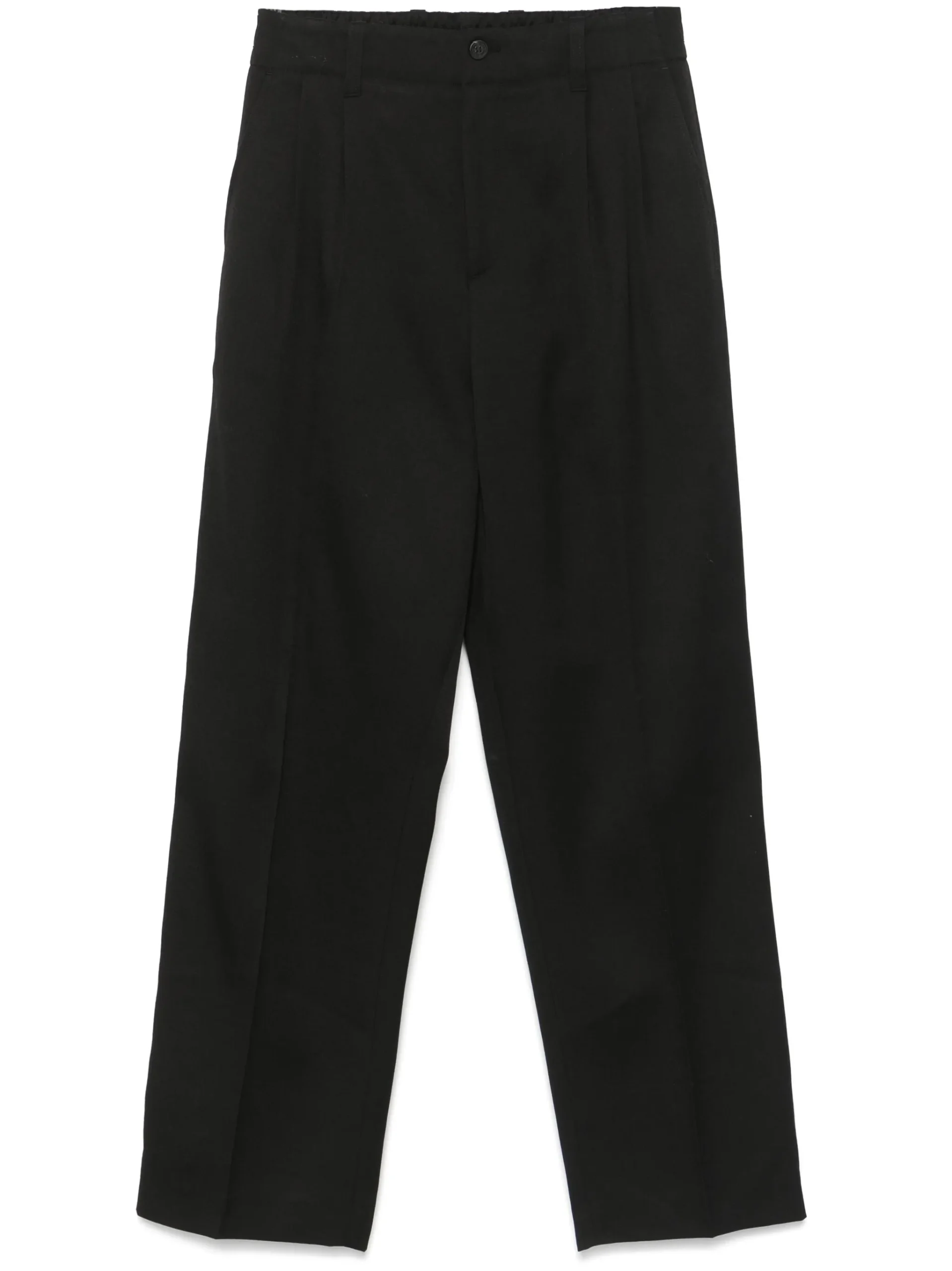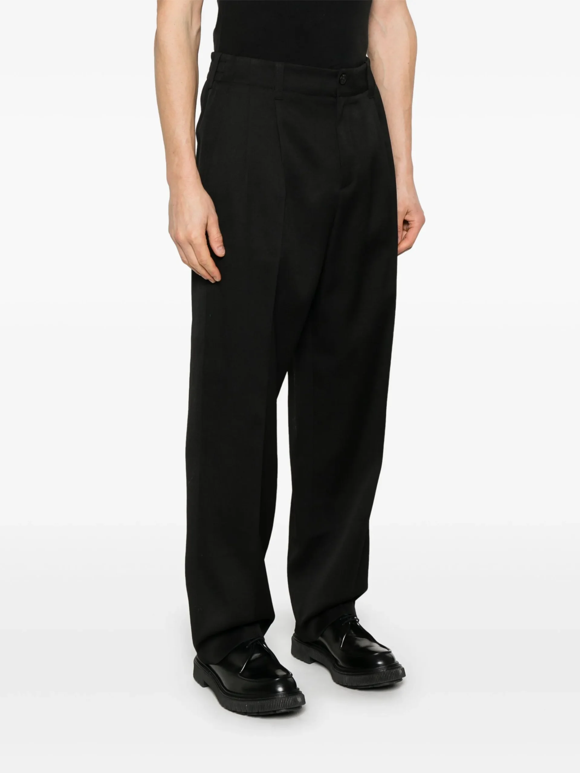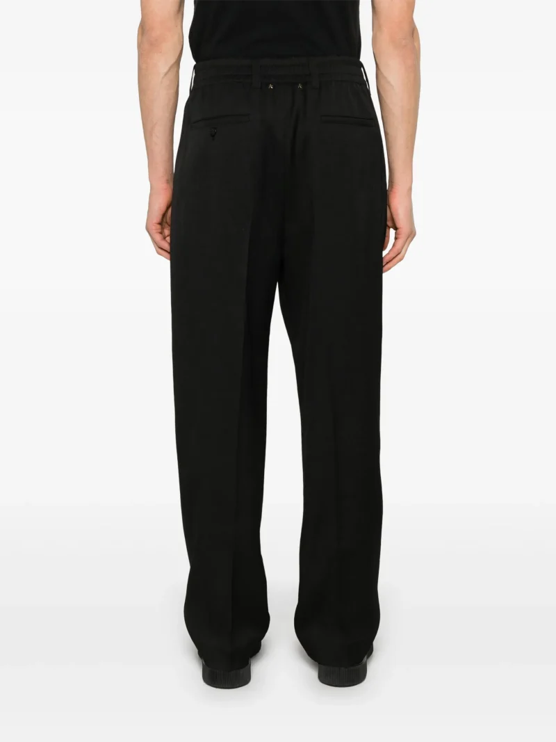 Pantaloni Golden Goose din lana virgina negri, cu inchidere ascunsa cu fermoar si nasture, talie elastica la spate, doua buzunare laterale tip slit si doua buzunare tip welt la spate. 100% lana