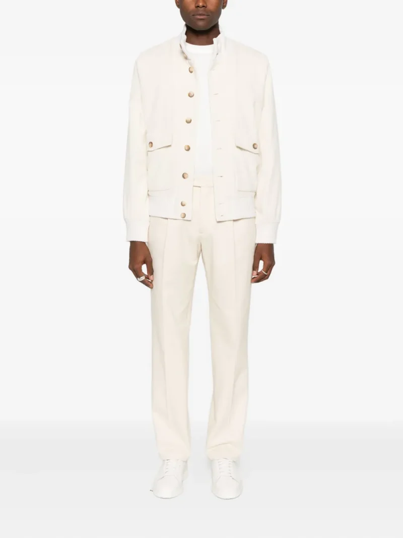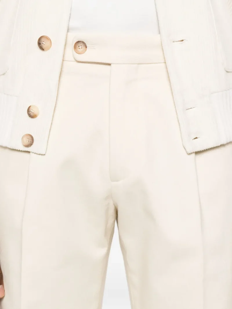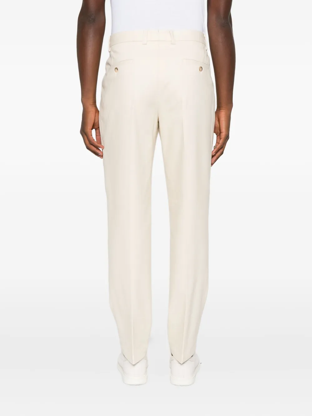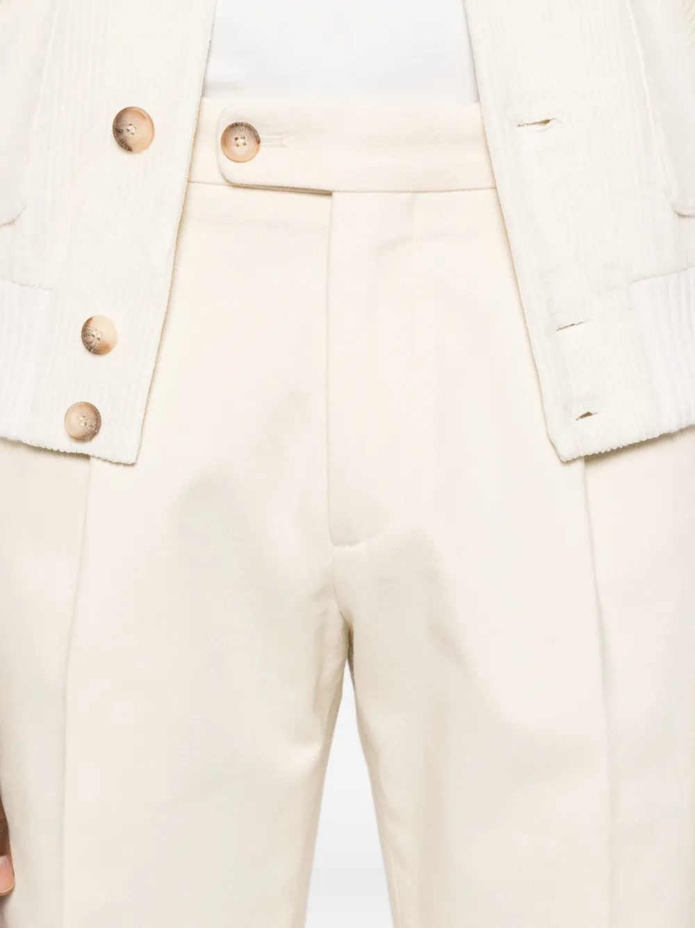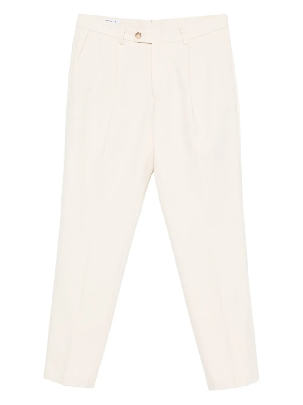 Pantaloni Gran Sasso Pleated Cotton bej, din bumbac, premium, cu inchidere nasture si fermoar, buzunare laterale, buzunare welt la spate, pliuri si tiv drept. Potriviti pentru sezonul toamna/iarna. 100% bumbac.