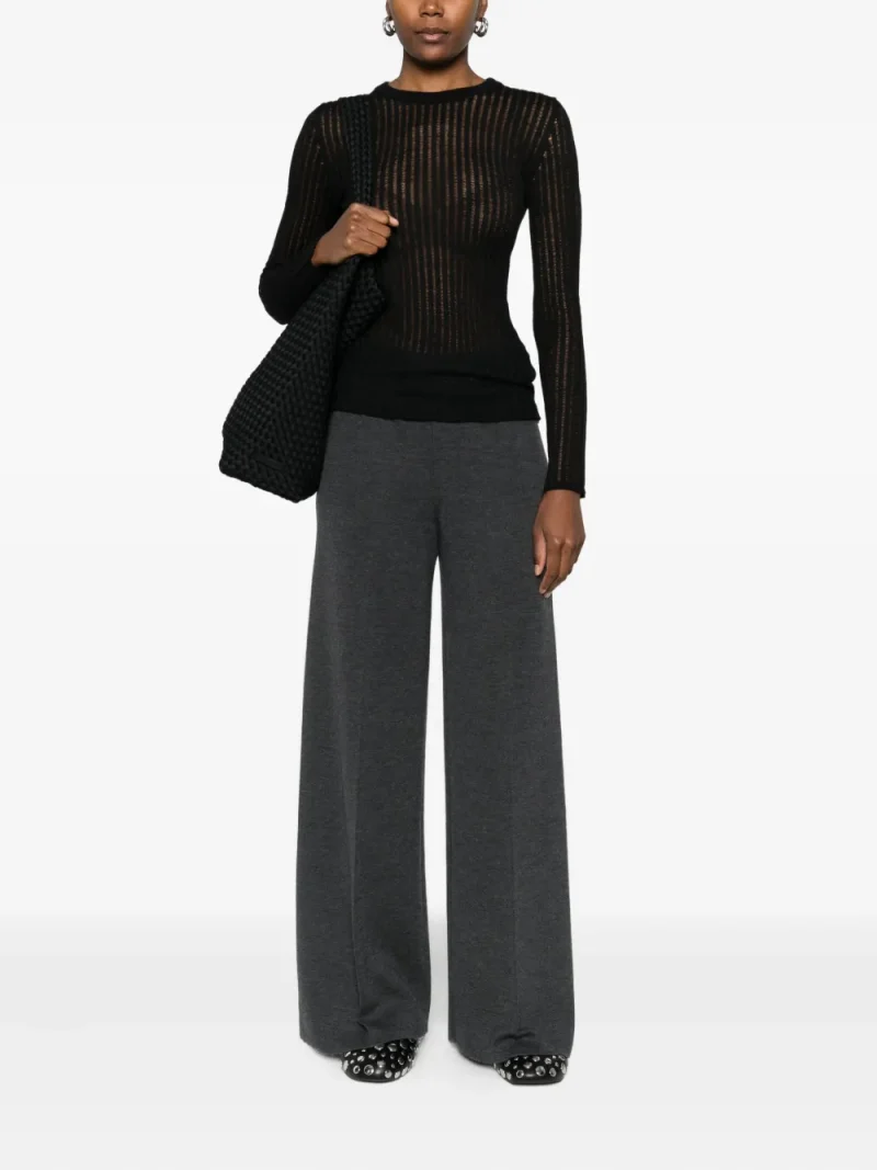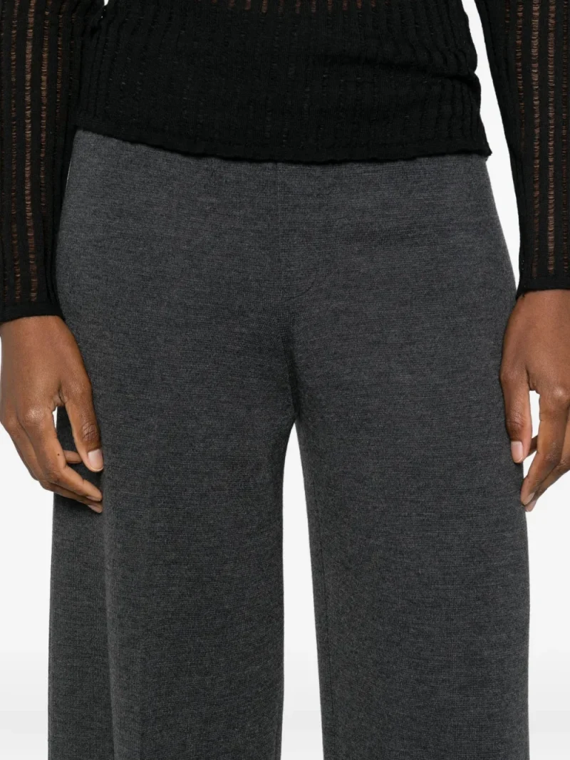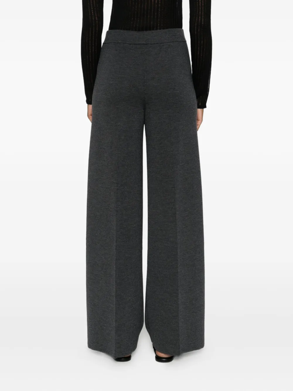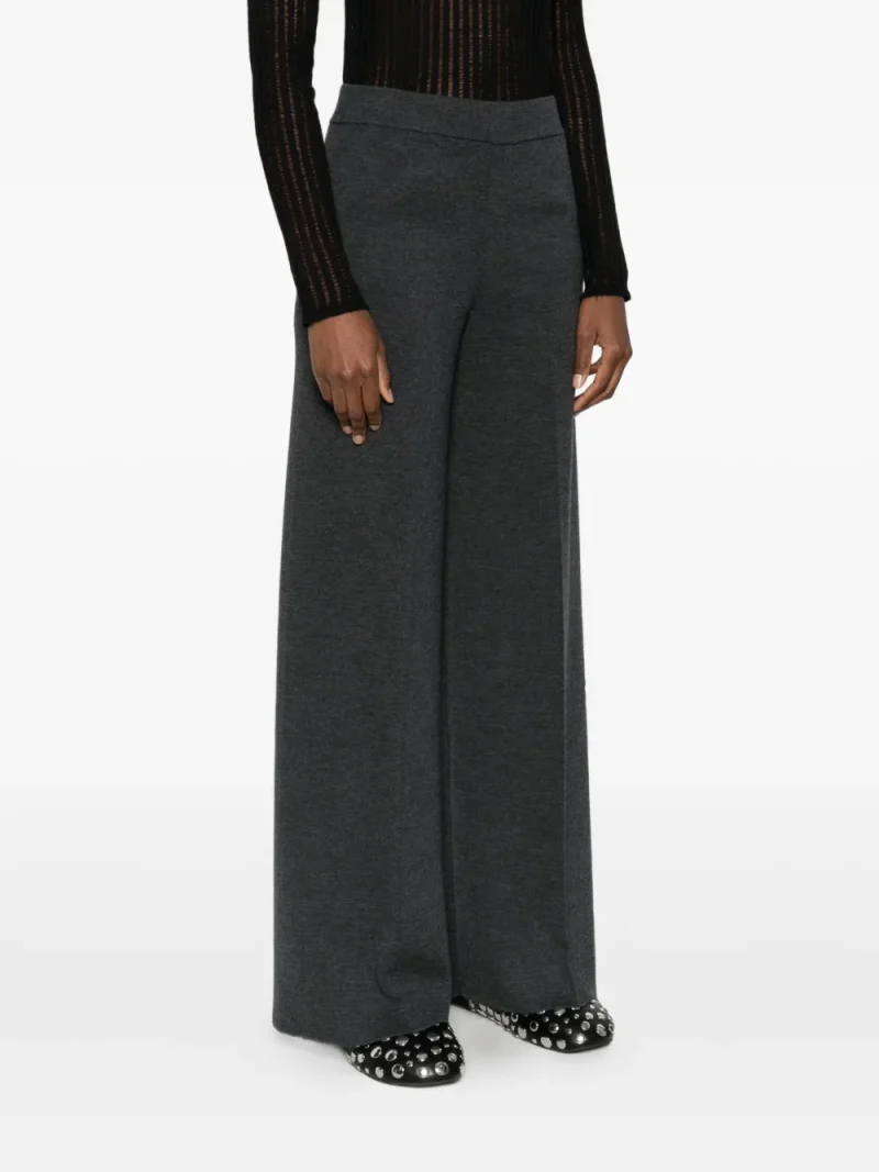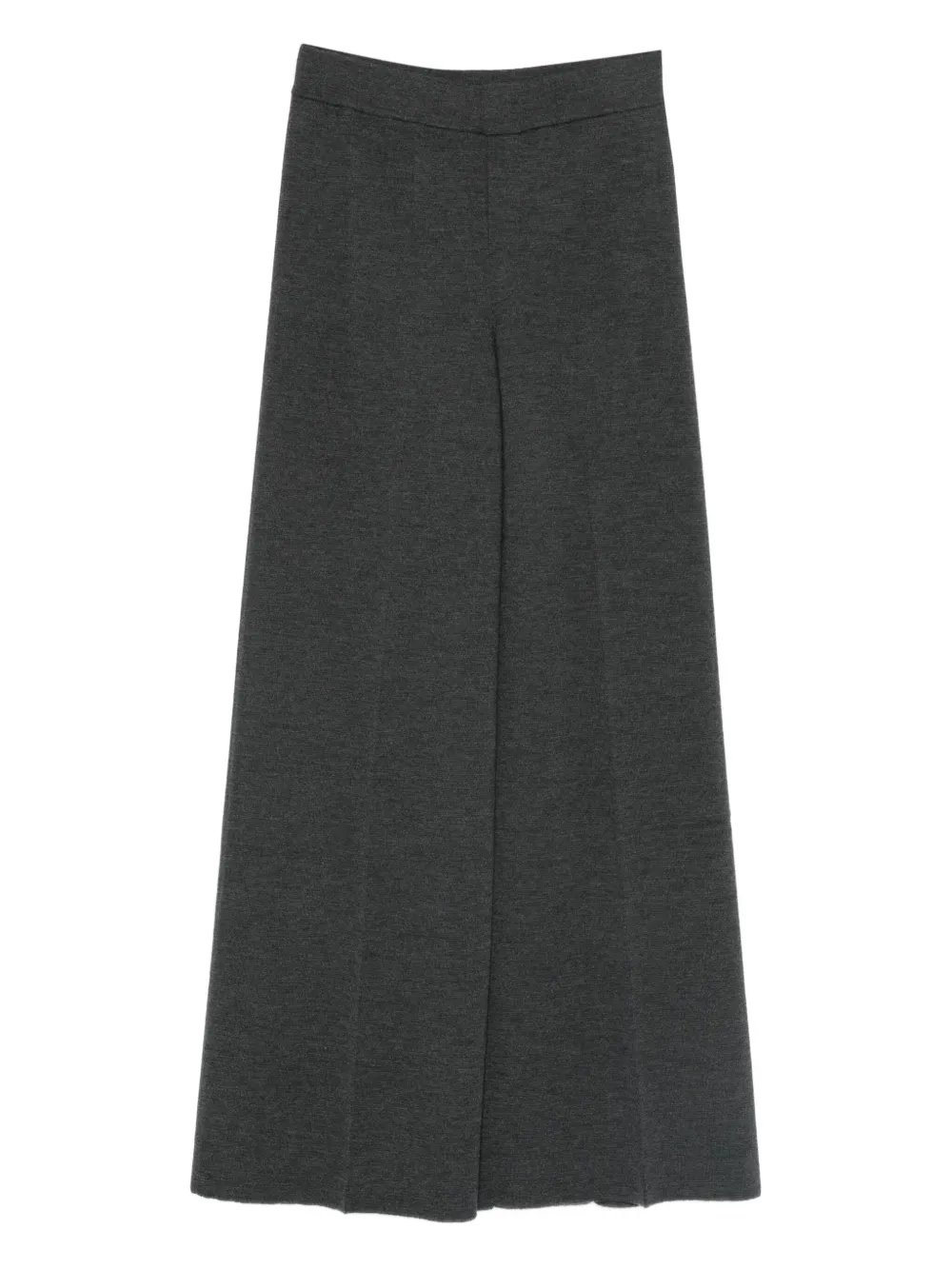 Pantaloni Gran Sasso Wool Wide-Leg gri, din lana, cu talie elastica, fit evazat, tesatura ribbed si tiv drept. Potriviti pentru sezonul toamna/iarna. 100% lana.