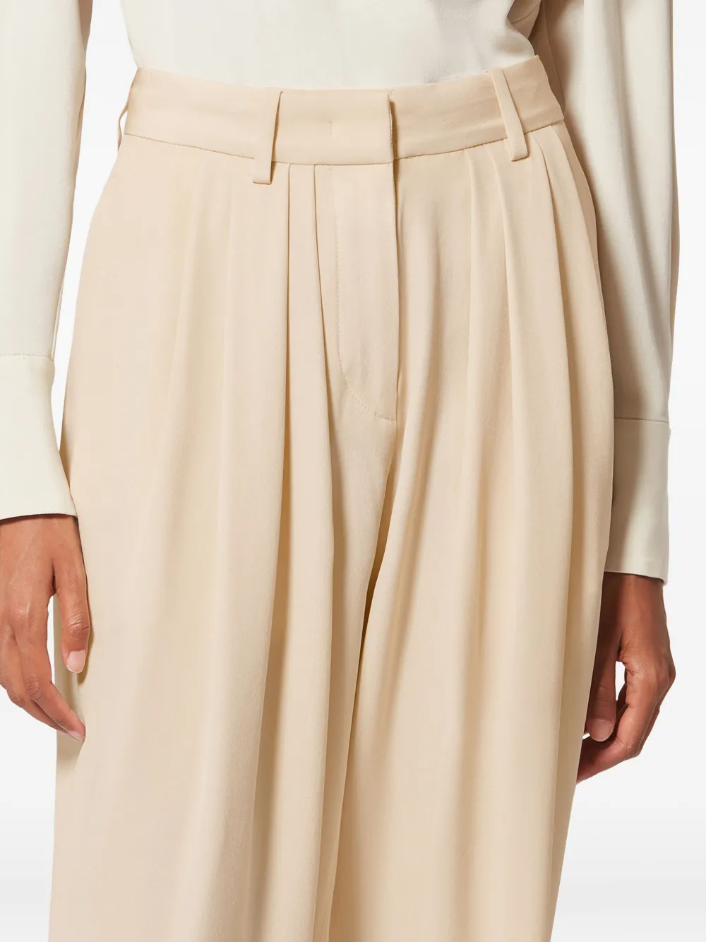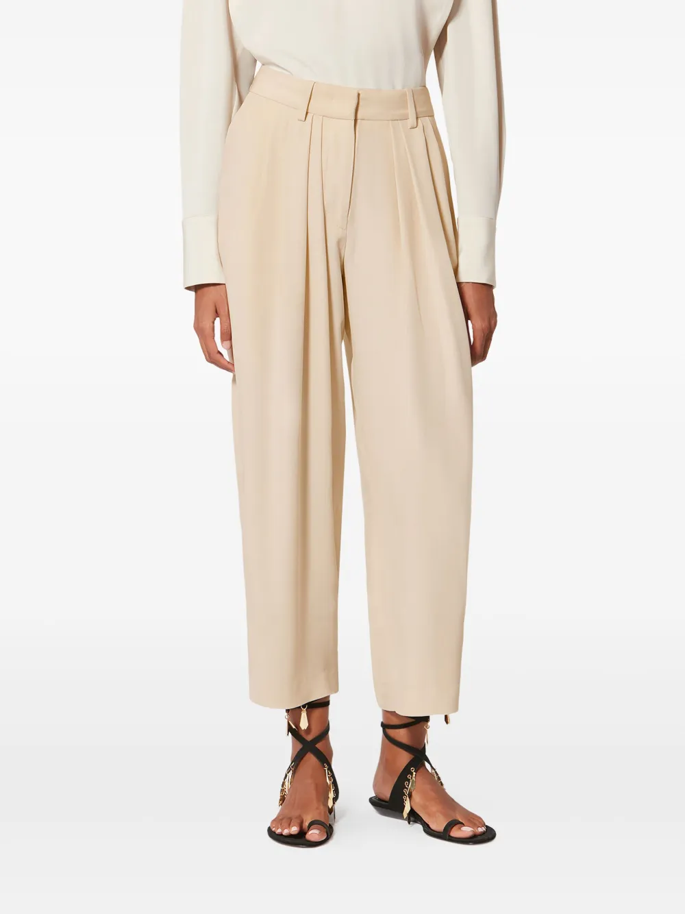 Pantaloni Isabel Marant Janice Pleated ecru, realizati din acetat si matase, cu talie inalta, inchidere nasture si fermoar, buzunare laterale, lungime cropped si tiv drept. Potriviti pentru sezonul primavara/vara. 65% acetat; 35% matase.