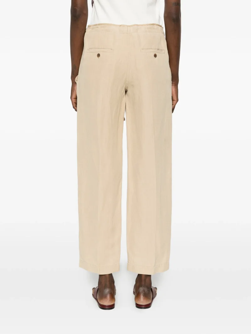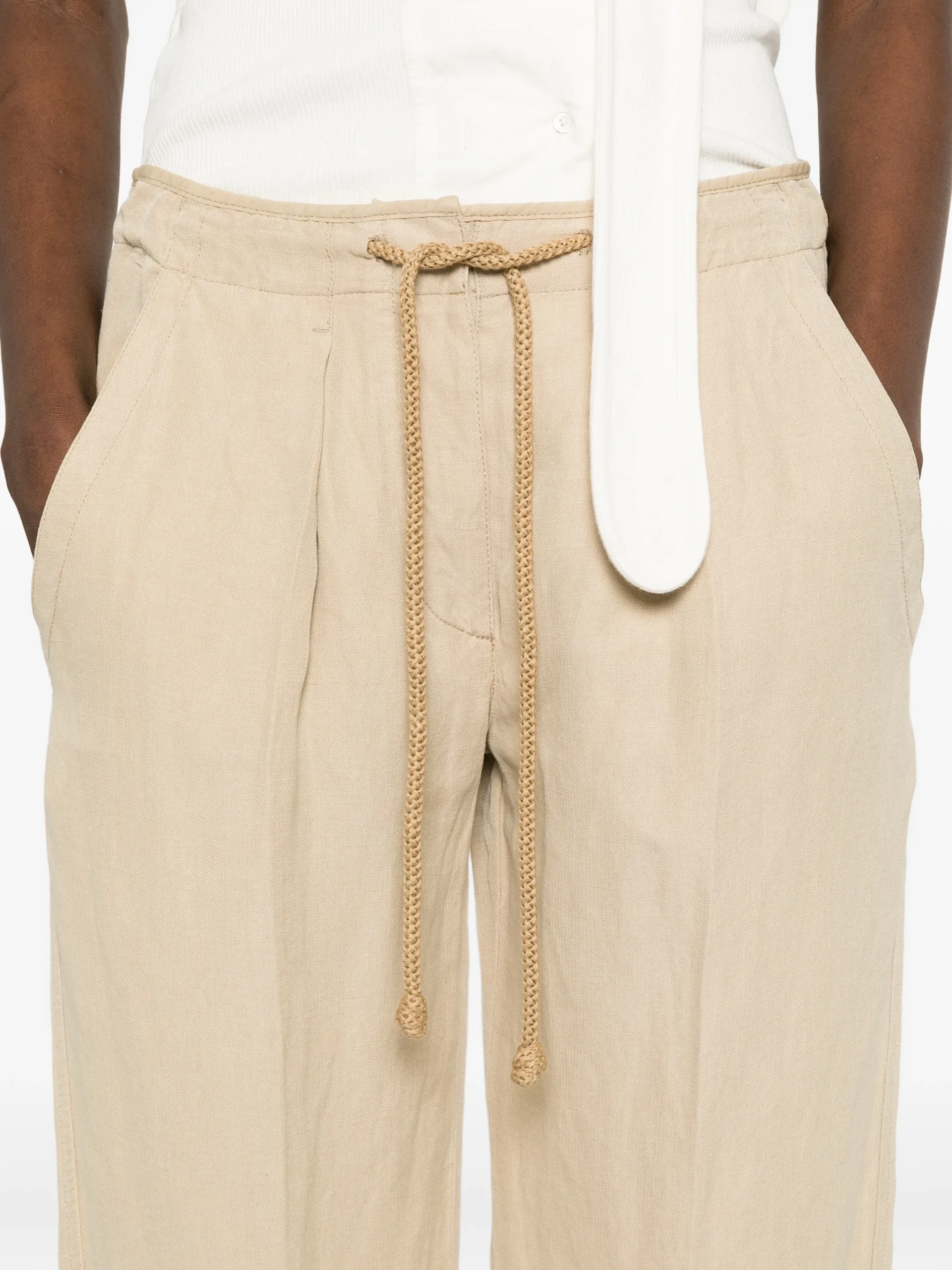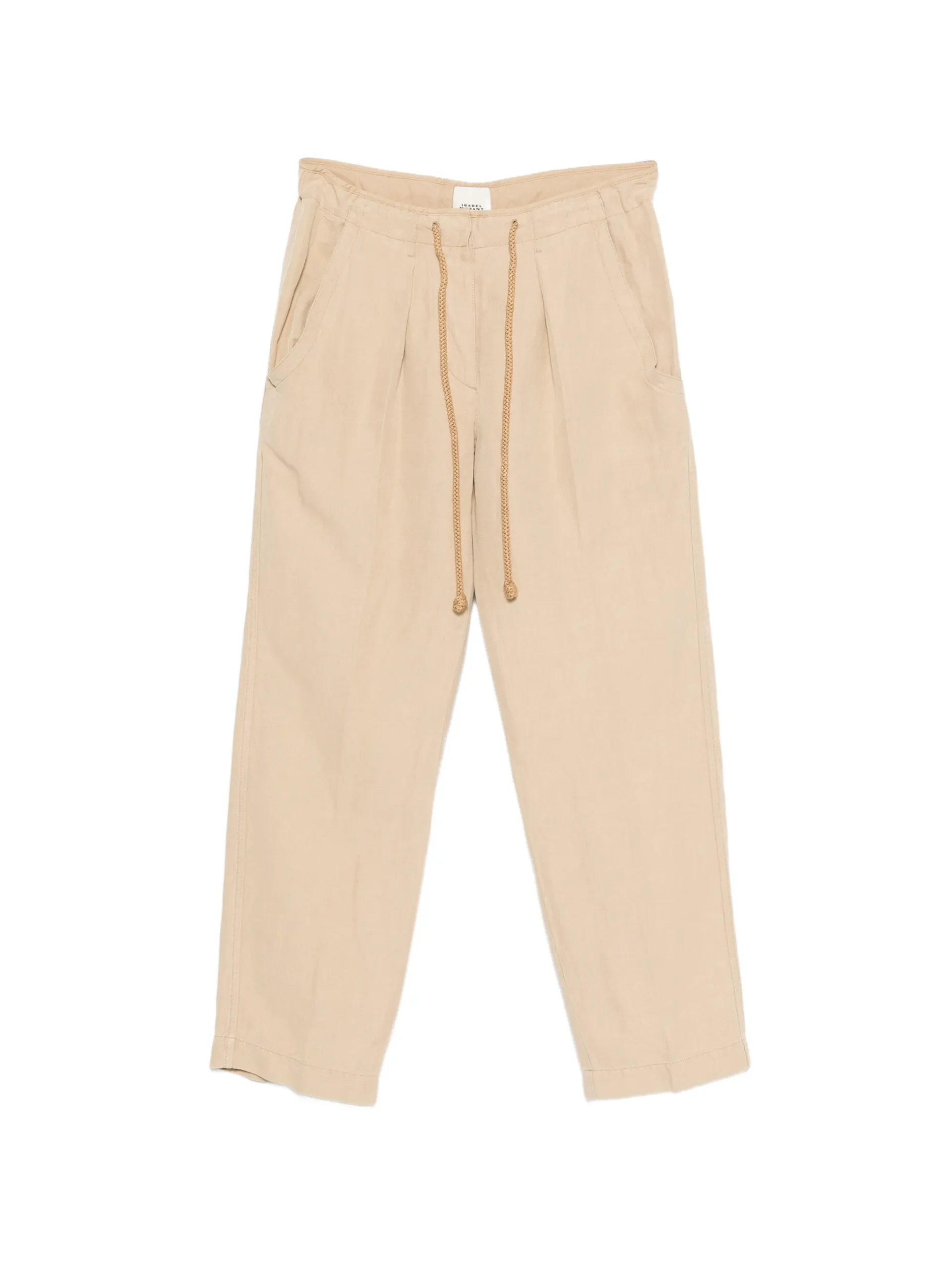 Pantaloni Isabel Marant Sharony bej, din bumbac, cu inchidere cu snur, buzunare laterale tip slip si cusaturi tonale. 62% in 38% matase