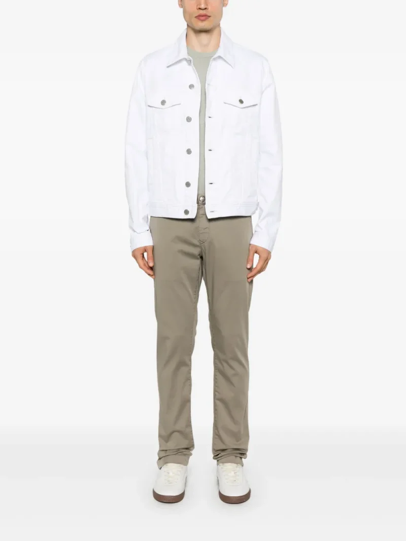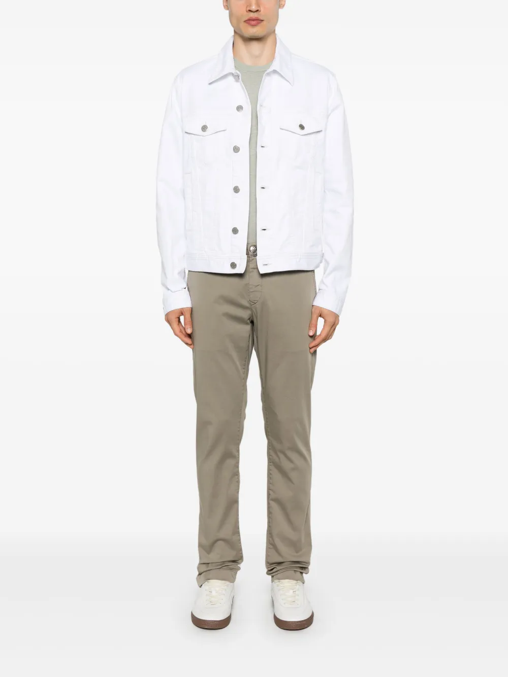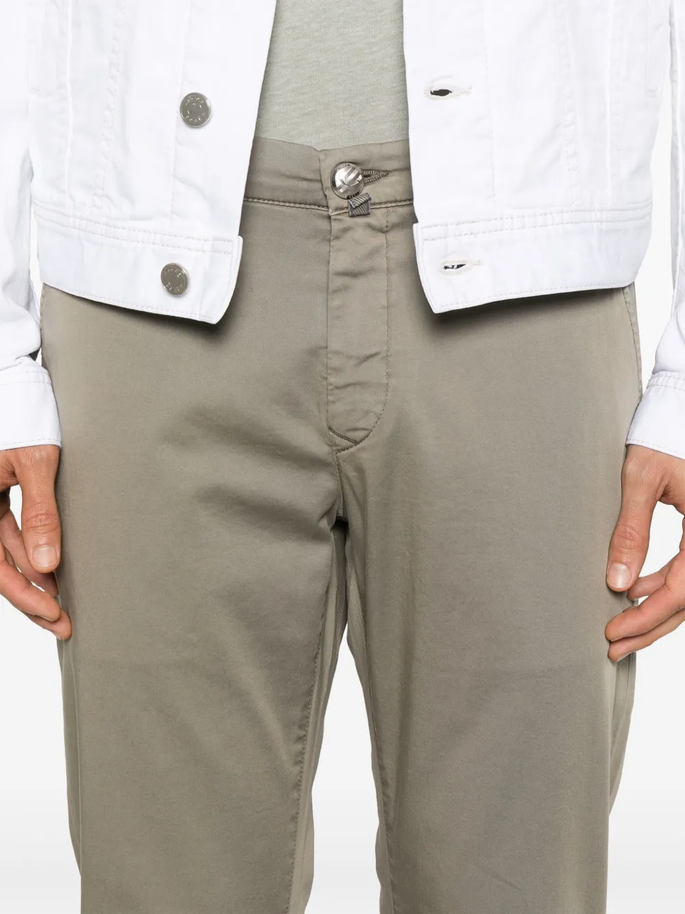 Pantaloni Jacob Cohen Bobby gri, din bumbac, cu inchidere nasture si fermoar, eticheta emblema Jacob Cohen cusuta la spate si tiv drept. Potriviti pentru sezonul primavara/vara. 3% elastan; 53% poliester; 97% bumbac; 47% bumbac.