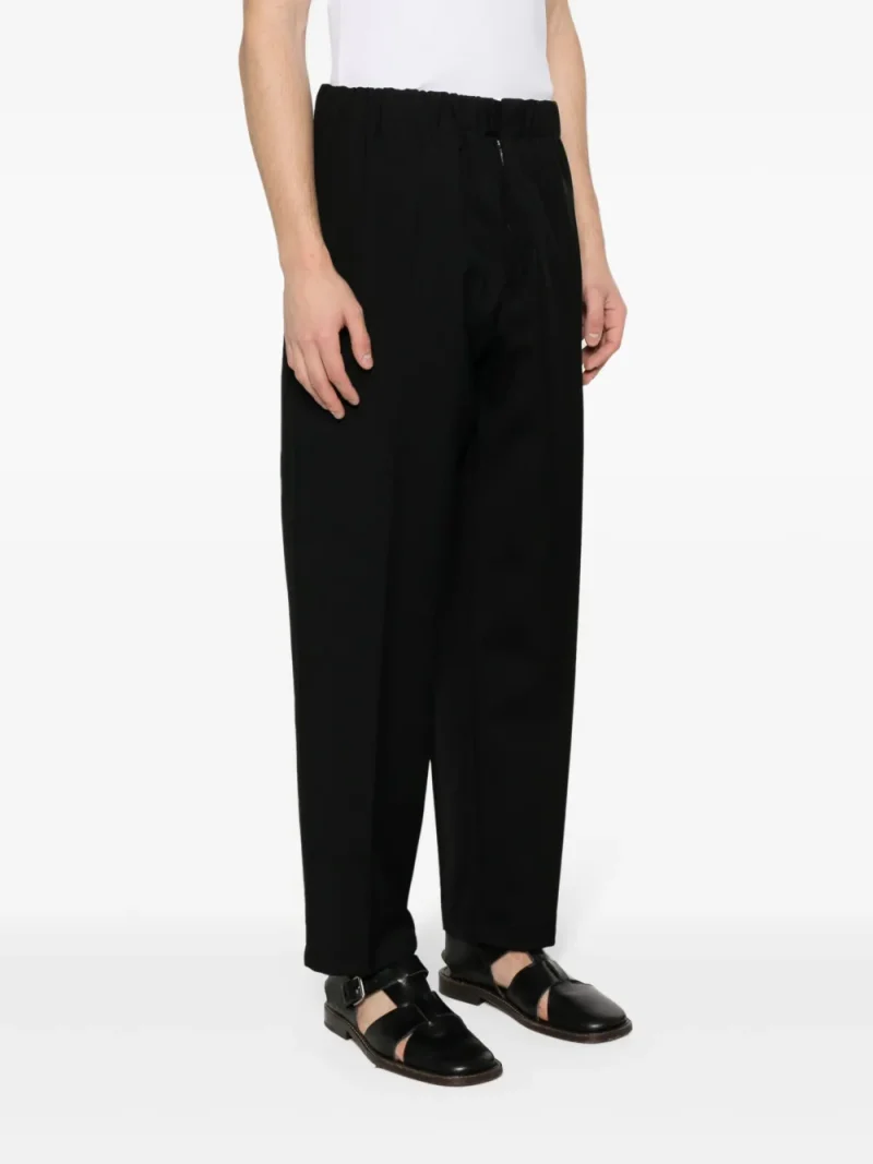 Pantaloni Jil Sander elasticated-waist negru, tesatura twill, pliuri presate, talie elastica cu snur, buzunare laterale, buzunare la spate, picior conic.100% lana