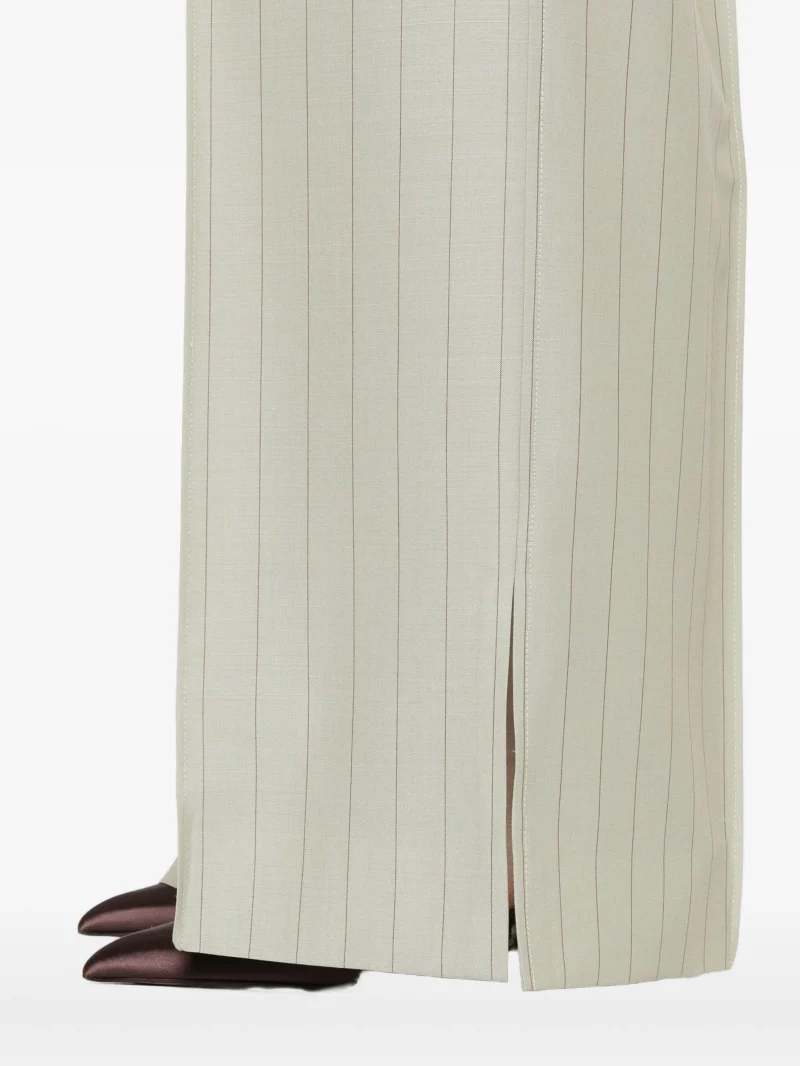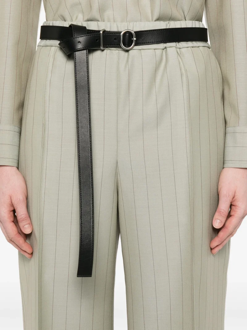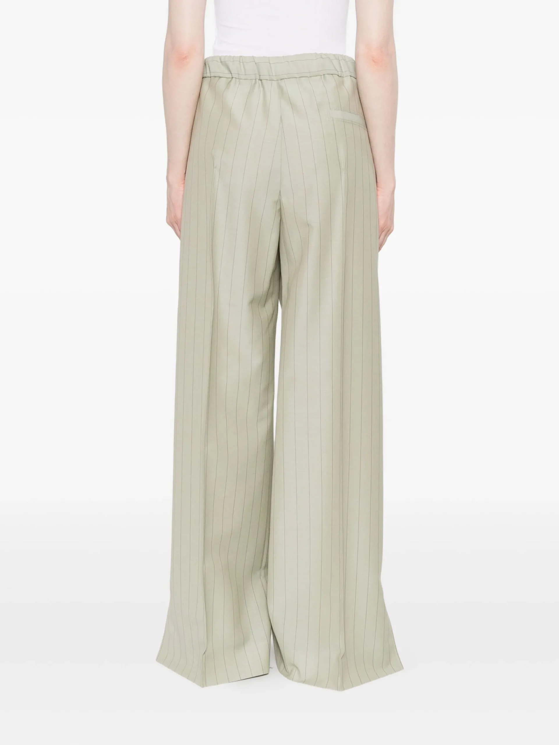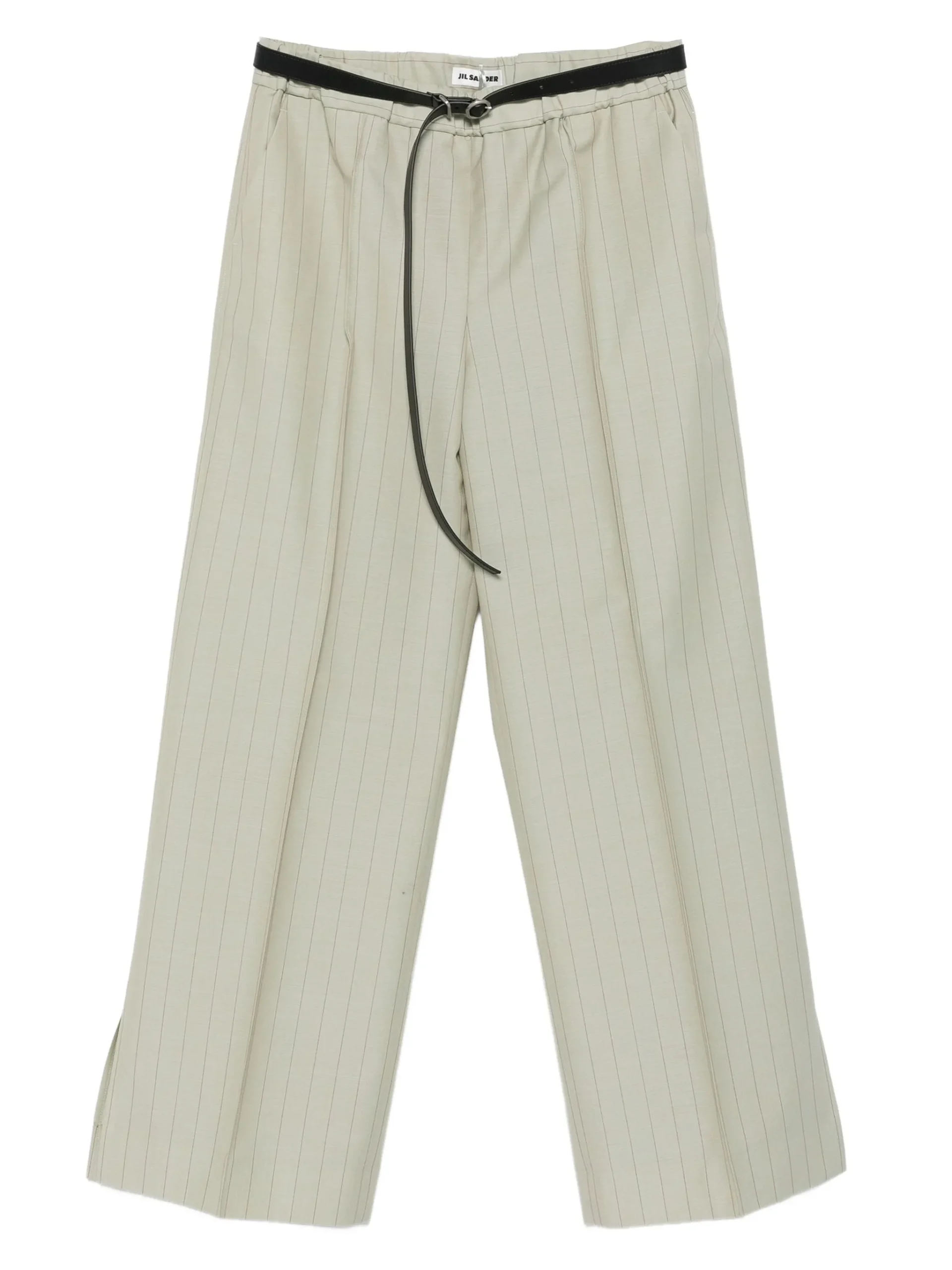 Pantaloni Jil Sander Pinstripe gri din amestec de lana si mohair, talie elastica, inchidere cu cordon, tiv drept, model cu dungi.75% lana 25% mohair