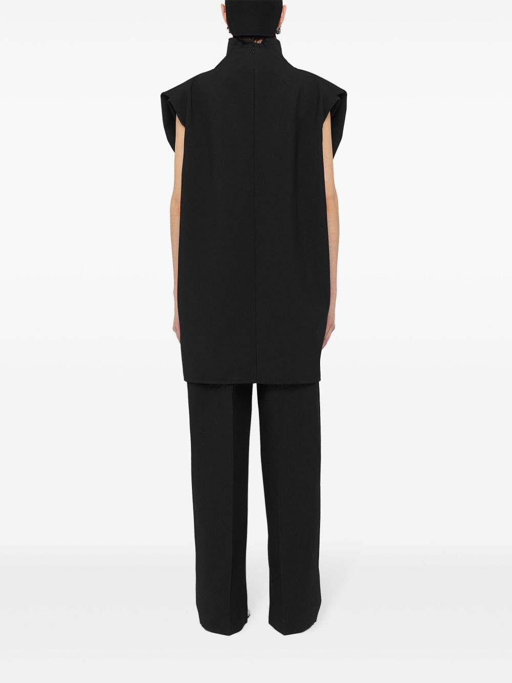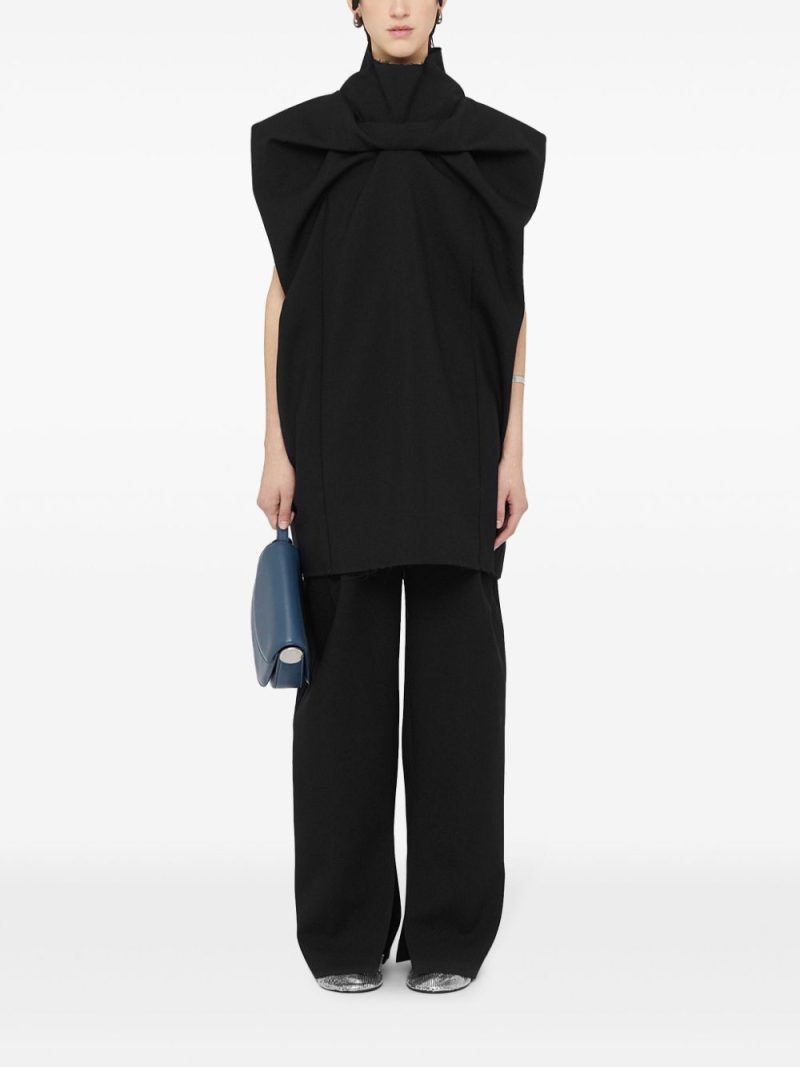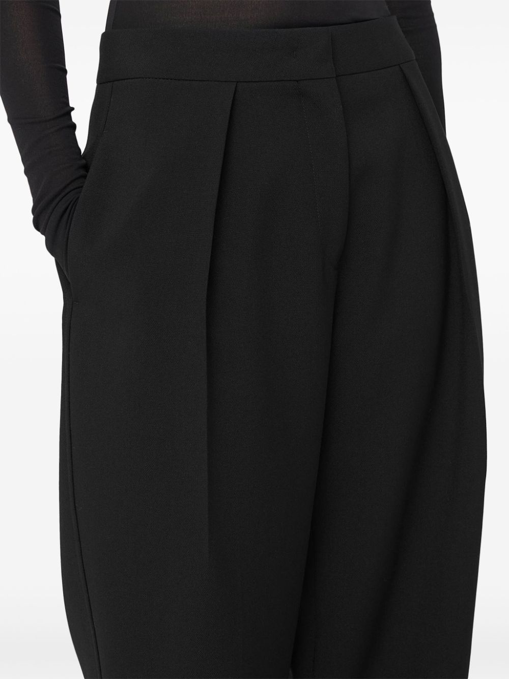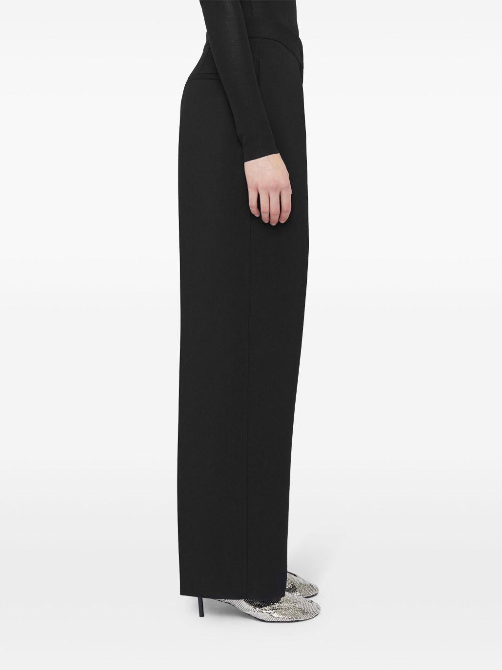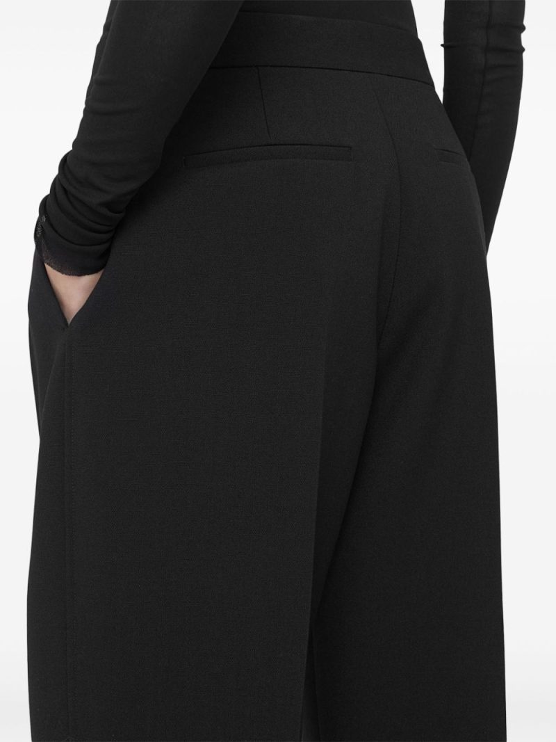 Pantaloni JIL SANDER Tailored negru, cu talie medie, inchidere clasica, buzunare laterale, buzunare tip welt la spate, pliuri decorative, lungime maxi si tiv drept. Potriviti pentru sezonul toamna/iarna. 100% lana.