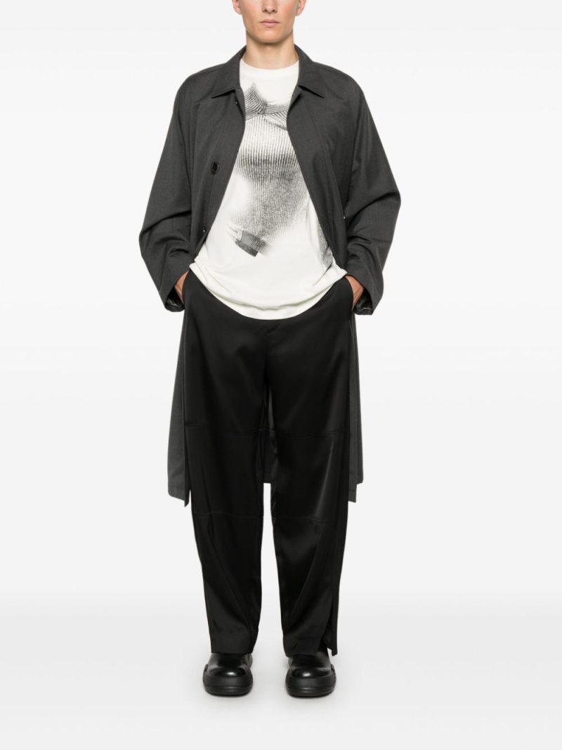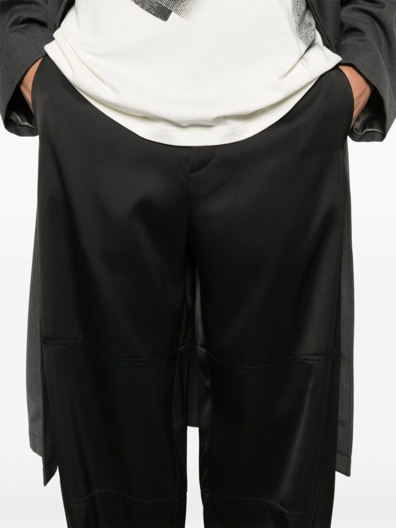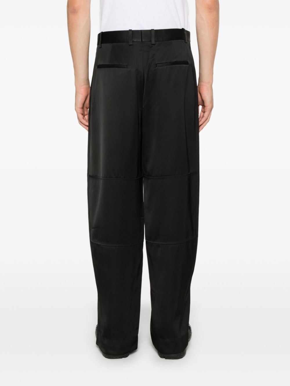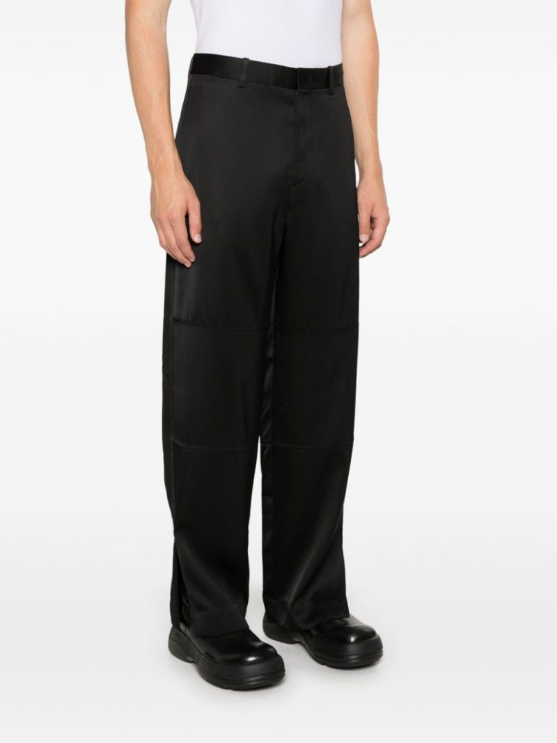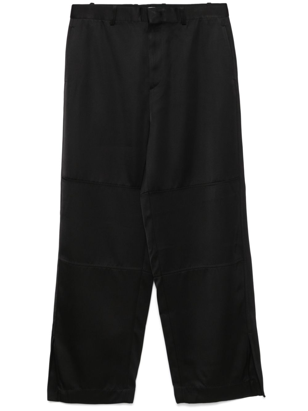 Pantaloni JIL SANDER Twill negru, design in panouri din viscoza, cu inchidere clasica, buzunare laterale, buzunare tip welt la spate, aspect lucios, slituri laterale si tiv drept. Potriviti pentru sezonul toamna/iarna. 100% viscoza; 83% viscoza; 17% matase.