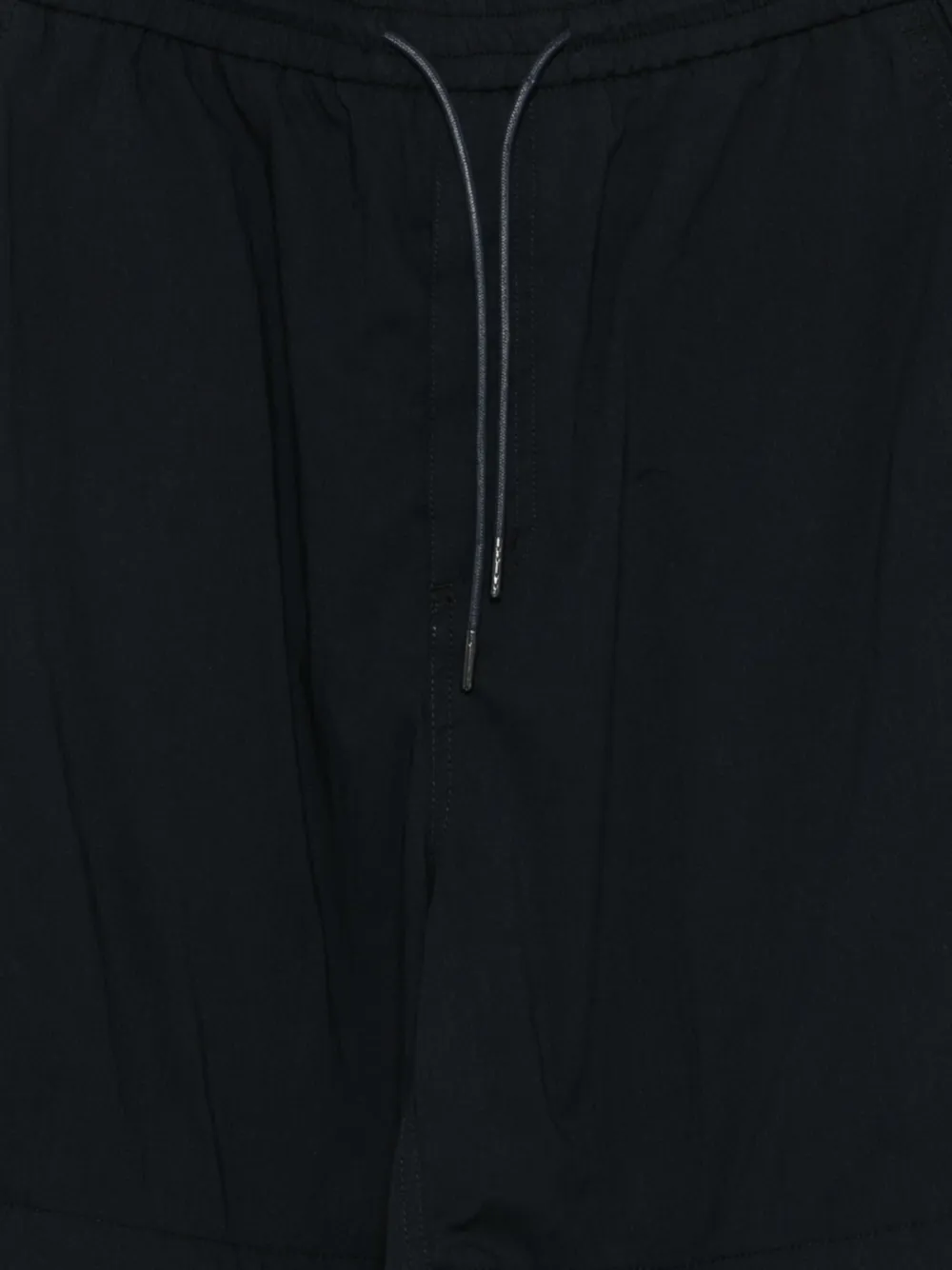 Pantaloni Juun.J Panelled Drawstring bleumarin, realizati din mix de materiale, cu talie elastica si inchidere snur, buzunare multiple, croiala wide-fit si tiv drept. Potriviti pentru sezonul primavara/vara. 49% bumbac; 49% nylon; 2% poliuretan.