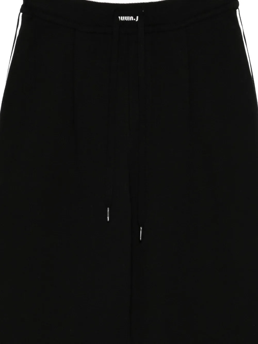 Pantaloni JUUN.J Side-Stripe negru, casual, realizati din tricot, cu talie elastica si inchidere snur, croiala lejera si tiv drept. Potriviti pentru sezonu primavara/vara. 66% rayon; 34% poliester.