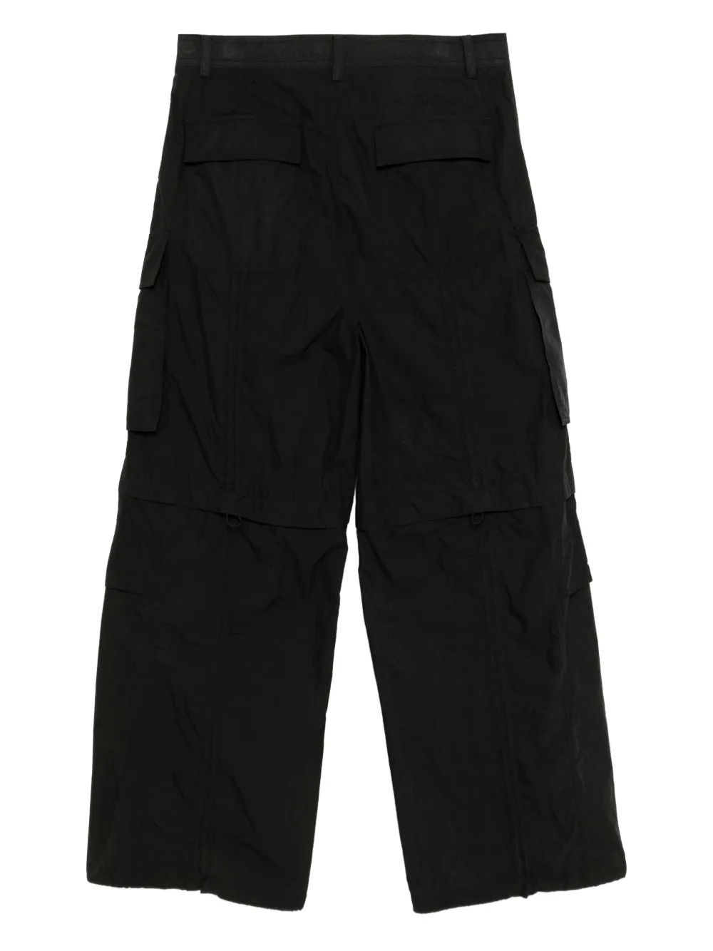 Pantaloni JUUN.J Wide-Leg Cargo negru, cu inchidere clasica, cu buzunare laterale, buzunare cu clapeta la spate si cargo pe laterale, pliuri decorative, aspect usor uzat si tiv elastic drept. Potriviti pentru sezonul toamna/iarna. 67% bumbac; 33% nylon.