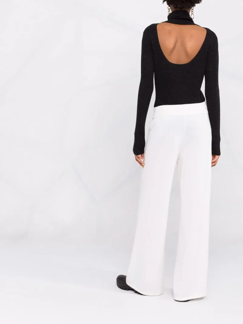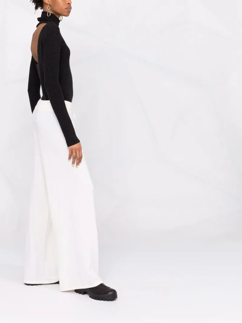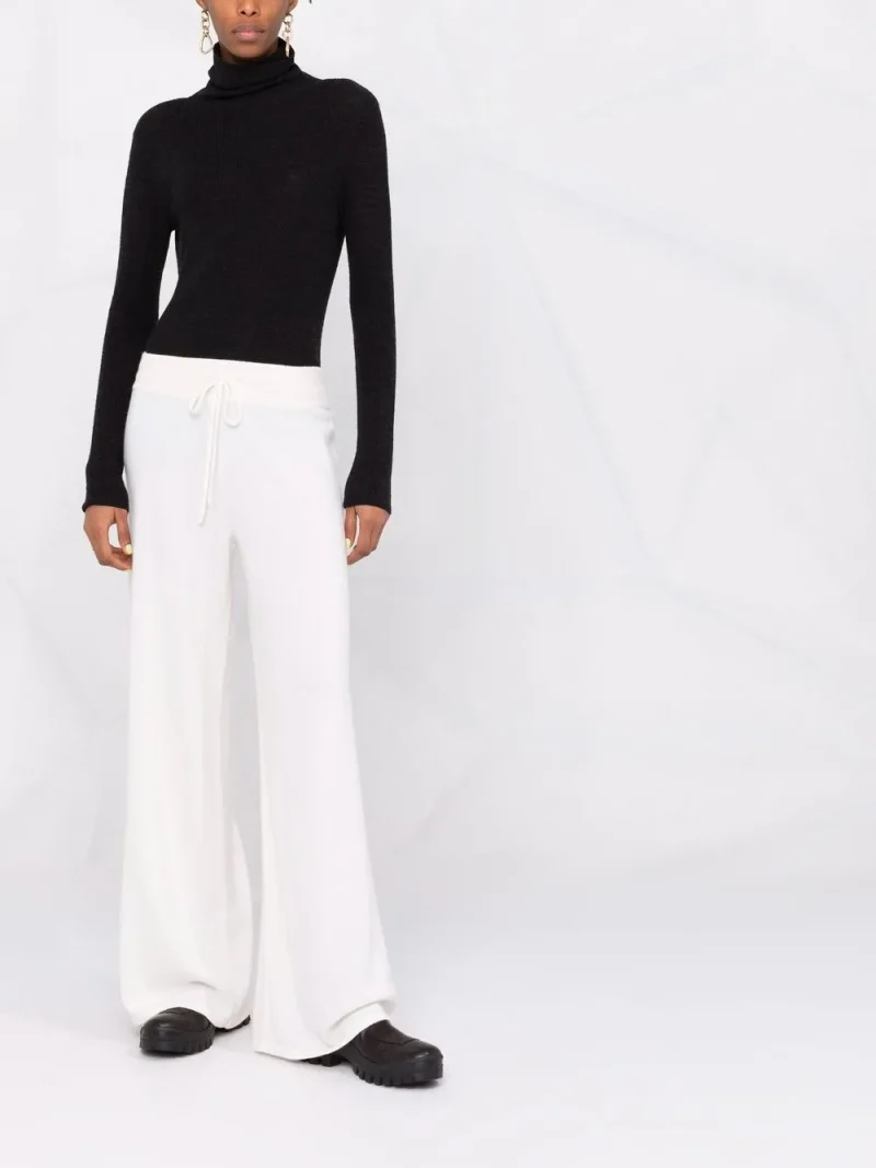 Pantaloni Lisa Yang Drawstring Cashmere alb, realizati din casmir, cu talie elastica si inchidere snur, constructie wide-fit si tesatura ribbed. Potriviti pentru sezonul primavara/vara. 100% casmir.