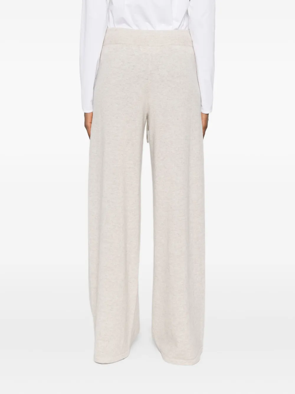 Pantaloni Lisa Yang Sofi Drawstring bej, wide-fit, tricotati din casmir, cu talie elastica si inchidere snur, buzunare laterale, buzunar aplicat la spate, tesatura ribbed si tiv drept. Potriviti pentru sezonul toamna/iarna. 100% casmir.
