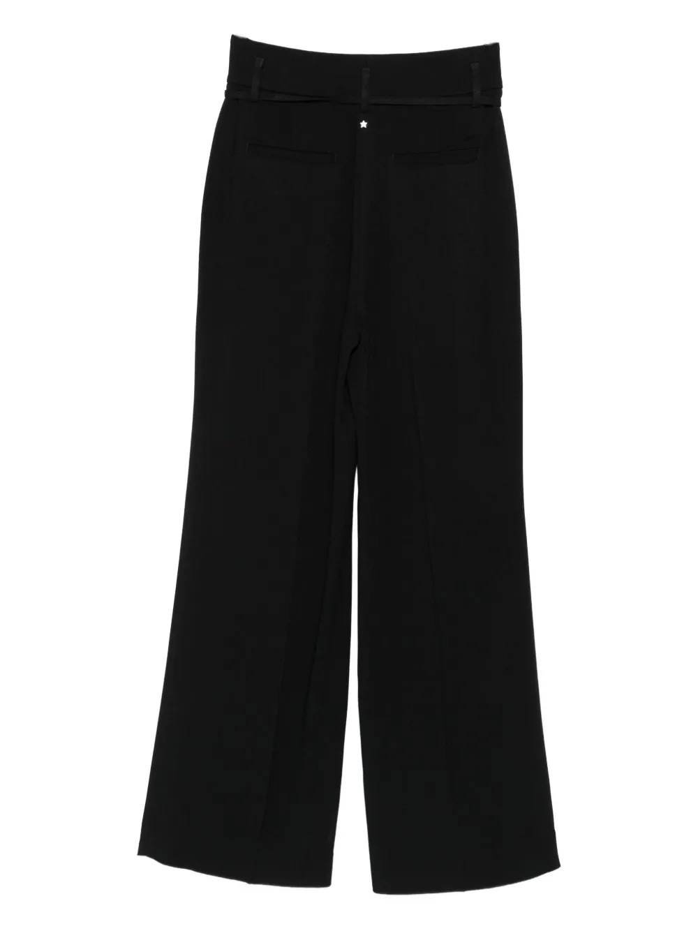 Pantaloni Lorena Antoniazzi Pleated negru, din viscoza, cu talie inalta, inchidere clasica, logo Star Lorena Antoniazzi cusut la spate, buzunare laterale, buzunare welt la spate, snut textil in jurul taliei si tiv drept. Potriviti pentru sezonul toamna/iarna. 100% textil.