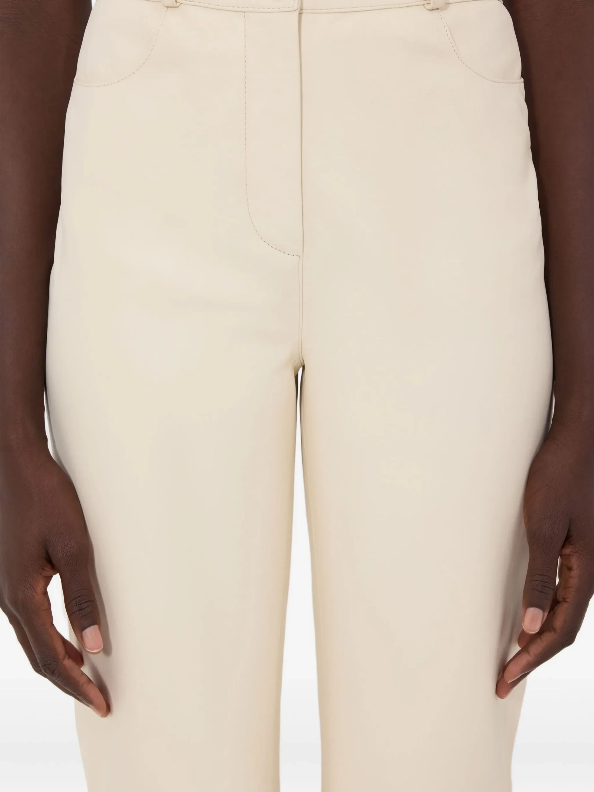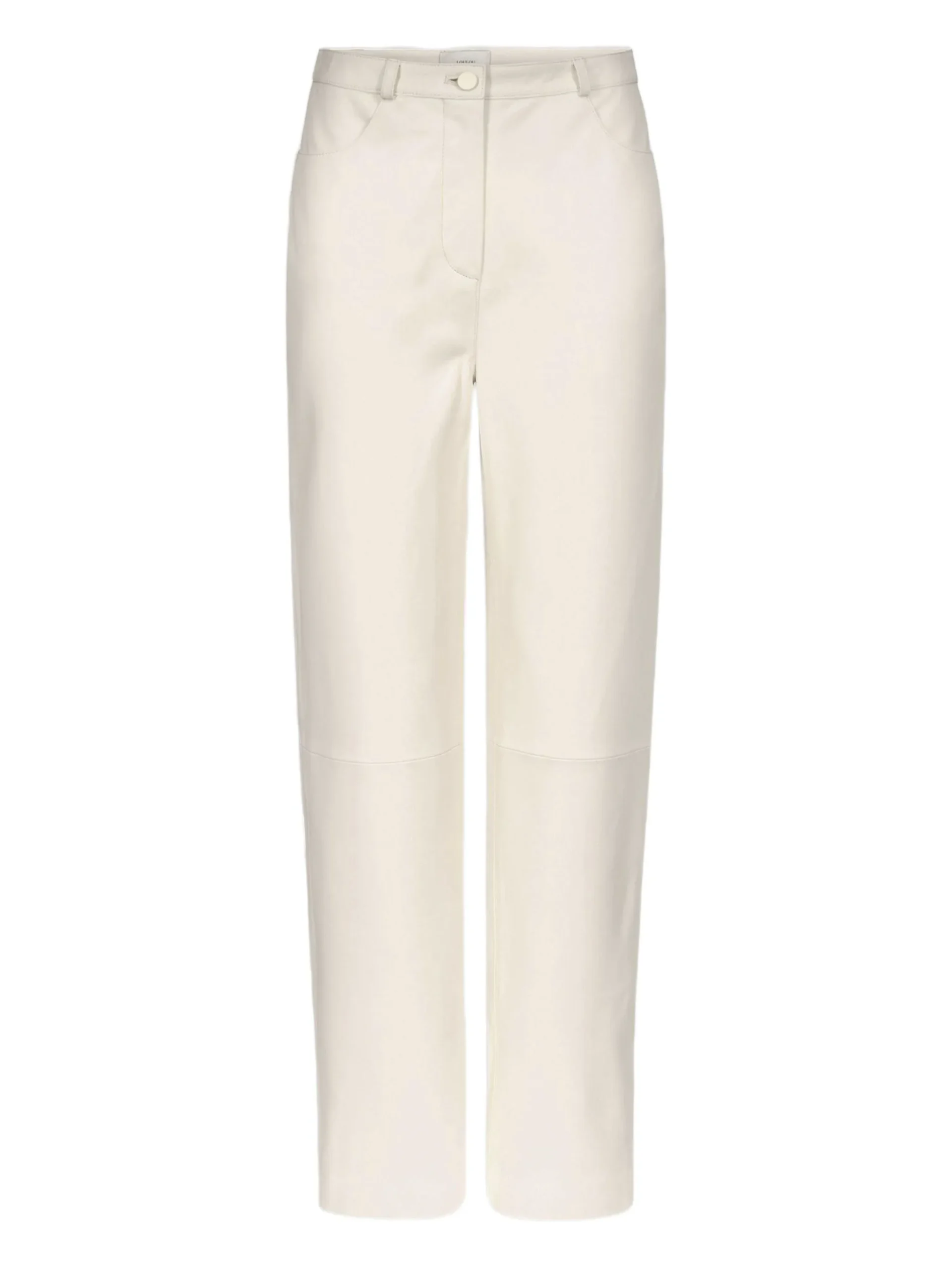 Pantaloni LouLou De Saison Cobe ecru, din piele, cu buzunare frontale, bucle pentru curea, inchidere cu nasture si fermoar.100% piele