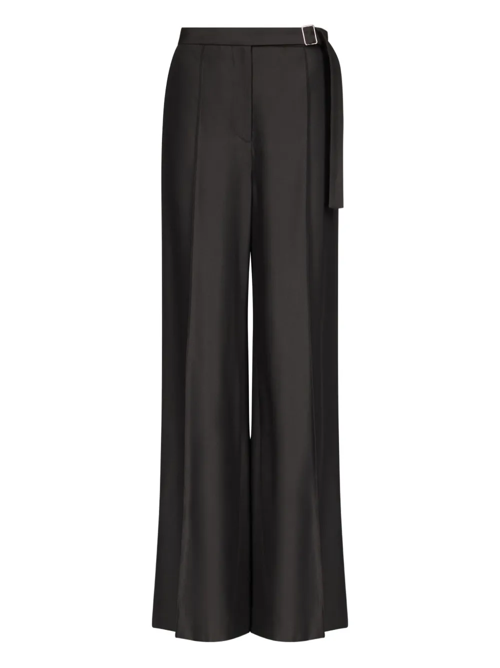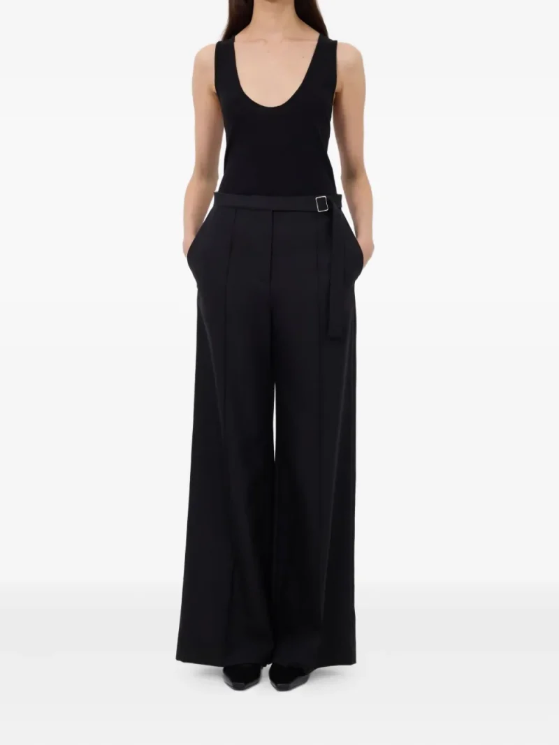 Pantaloni LouLou de Saison Pleated Buckle-Fastening negru, wide-fit, realizati din lana, cu inchidere clasica, buzunare laterale si welt la spate, curea in jurul taliei, decorati cu pliuri si tiv drept. Potriviti pentru sezonul toamna/iarna. 50% viscoza; 35% lana; 15% mohair.
