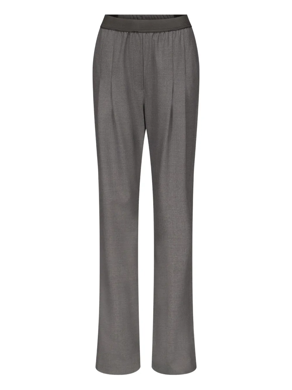 Pantaloni LouLou de Saison Pleated gri, realizati din lana, cu talie elastica, pliuri duble pe partea superioara, buzunare laterale, buzunare welt la spate, croiala straight si tiv drept. Potriviti pentru sezonul toamna/iarna. 95% lana; 5% elastan.