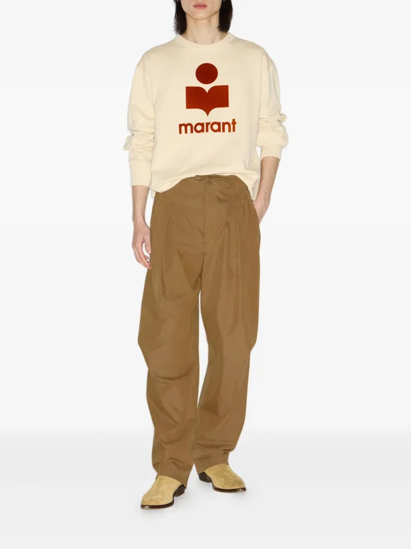 Pantaloni Marant Deyann, maro cu subton kaki, realizati din bumbac, cu talie joasa si inchidere snur, detalii plisate, buzunare diagonale, buzunare welt la spate si tiv drept. Potriviti pentru sezonul toamna/iarna. 100% bumbac.