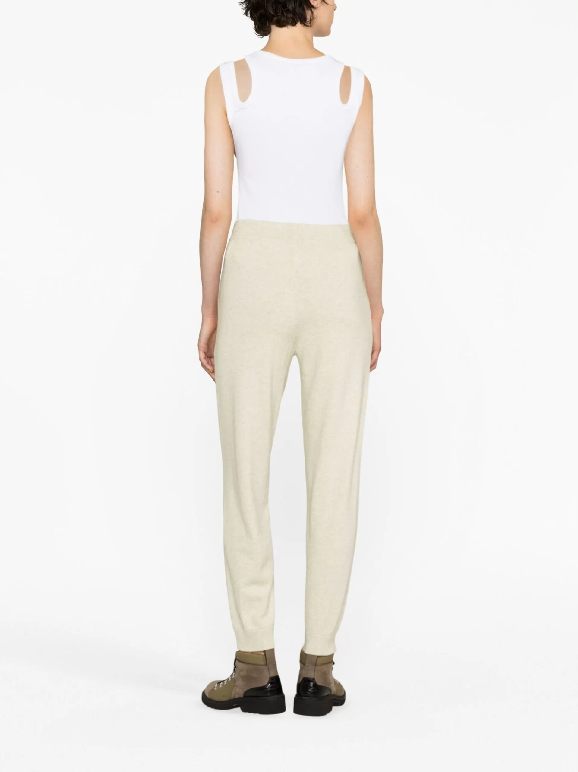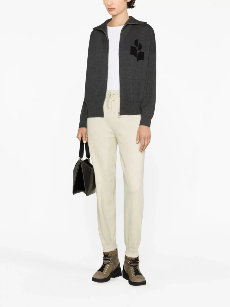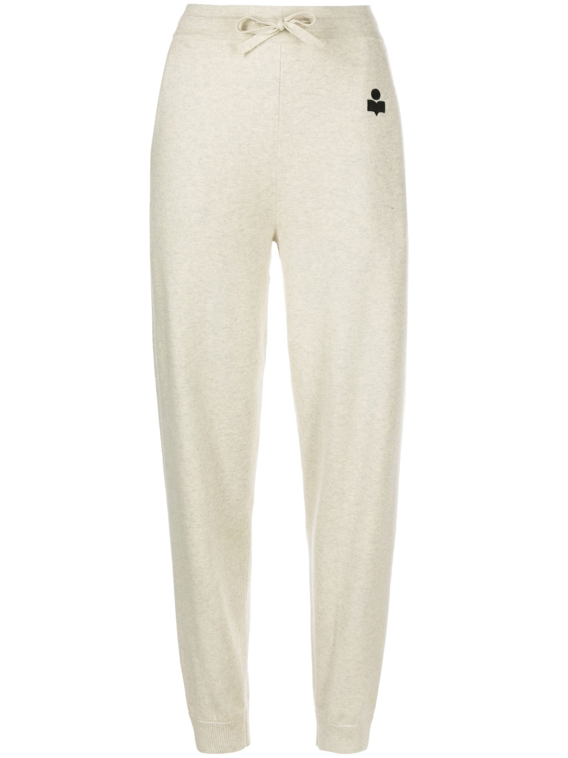 Pantaloni gri din bumbac, lana si fibre sintetice, cu banda elastica in talie si snur, croi slim, logo Marant Etoile aplicat pe partea din fata si mansete elastice din tricot rib. Potriviti pentru sezonul toamna/iarna. 46% bumbac; 25% viscoza; 19% lana; 10% poliester.