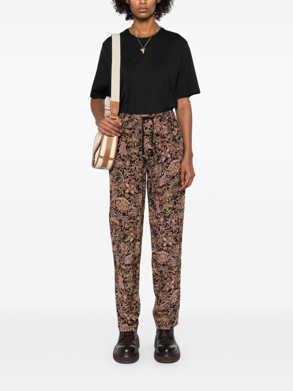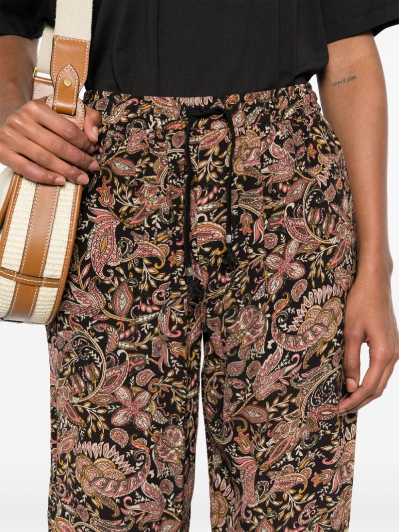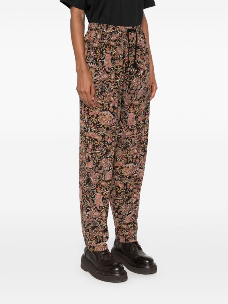 Pantaloni Marant Étoile Zahera multicolor, din viscoza, cu talie elastica si inchidere snur, buzunare laterale, grafica „Zahera” imprimata pe toata suprafata si tiv drept. Potriviti pentru sezonul toamna/iarna. 100% viscoza; 100% bumbac.