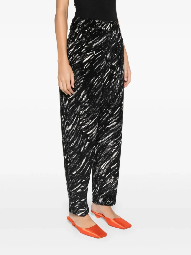 Pantaloni Marni Crayon-Print alb/negru, din bumbac cu efect de catfea, cu inchidere nasture si fermoar, eticheta logo Marni cusuta la spate, grafica Crayon imrpimata pe toata suprafata produsului si tov drept. Potriviti pentru sezonul toamna/iarna.98% bumabc; 2% elastan; 65% poliester; 35% bumbac.