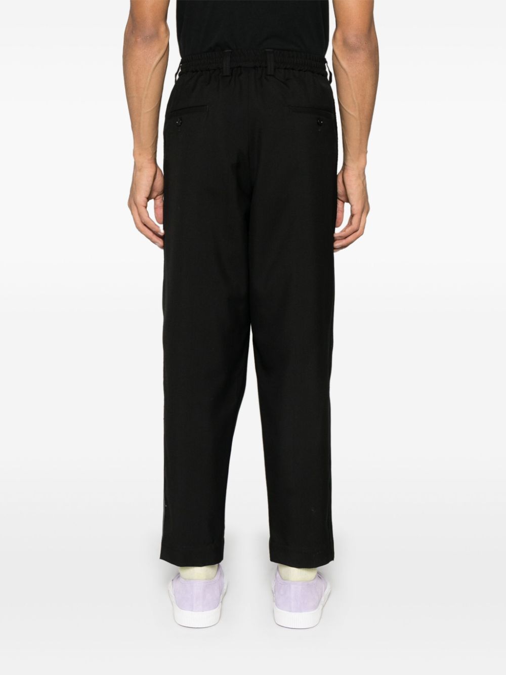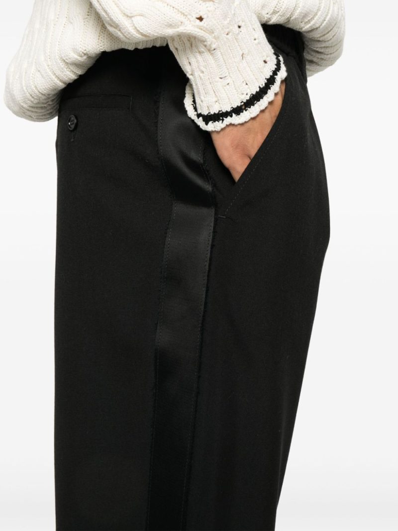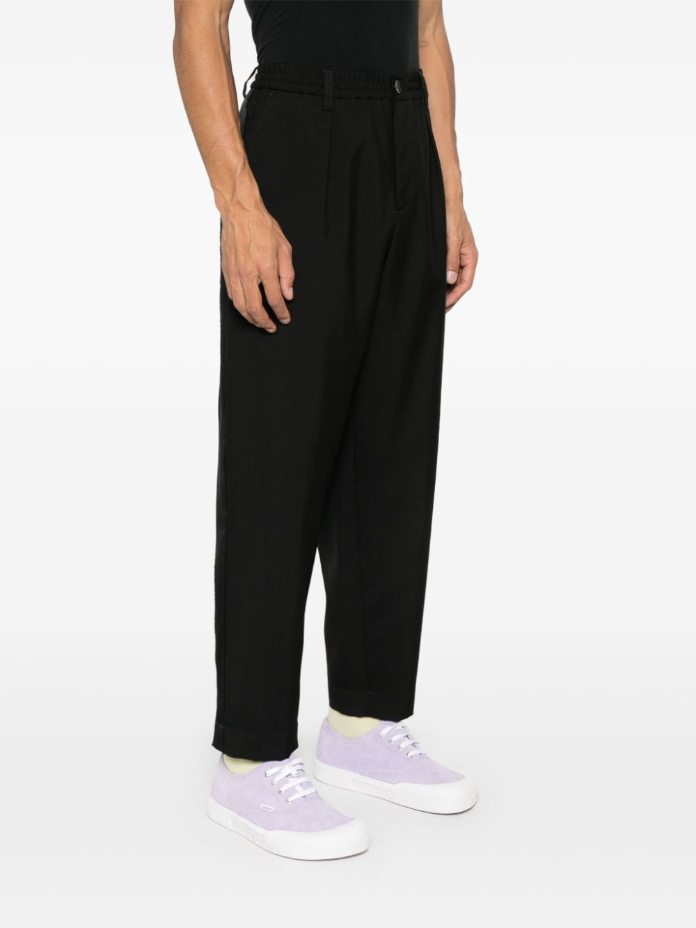 Pantaloni Marni Wool negru, din lana, cu talie elastica, inchidere clasica, buzunare diagonale, buzunare tip welt la spate, dunga laterala satinata, detalii plisate so tiv drept. Potriviti pentru sezonul primavara/vara. 69% bumbac; 31% poliamida; 100% lana.