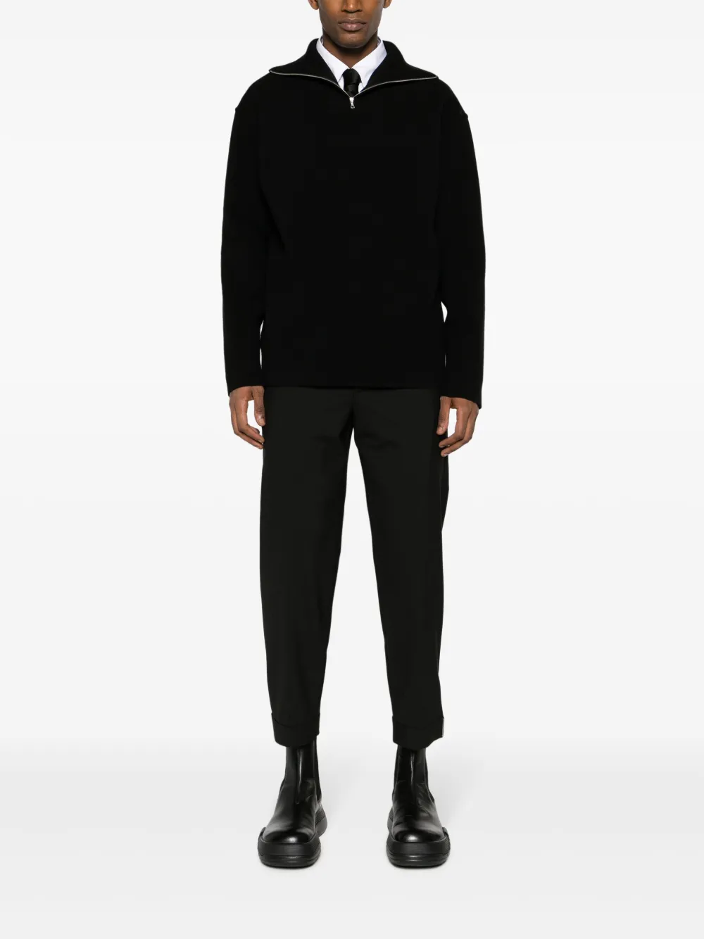 Pantaloni Neil Barrett Jamie slim-cut cropped negru, croiala slim, talie inalta, inchidere frontala cu nasture si fermoar si tiv rasucit. 80% poliester, 20% bumbac
