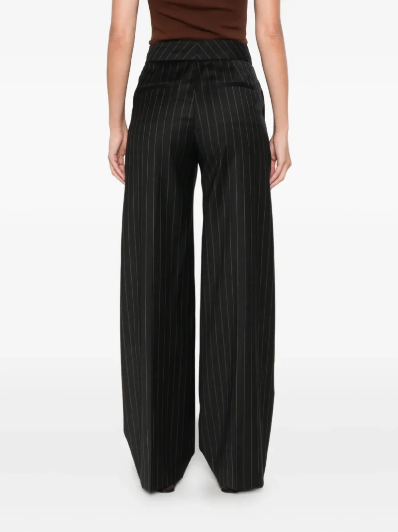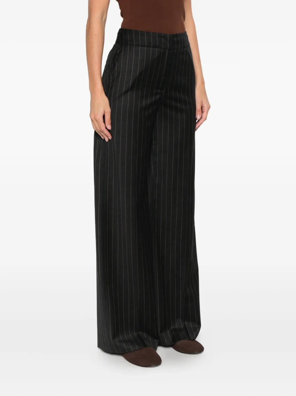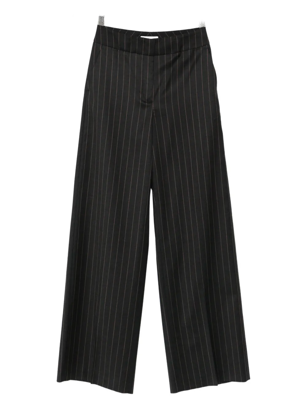 Pantaloni Peserico Pinstripe gri, wide-fit, cu talie inalta, inchidere clasica, buzunare laterale, buzunare tip welt la spate, grafica in dungi si tiv drept. Potriviti pentru sezonul toamna/iarna. 100% lana.