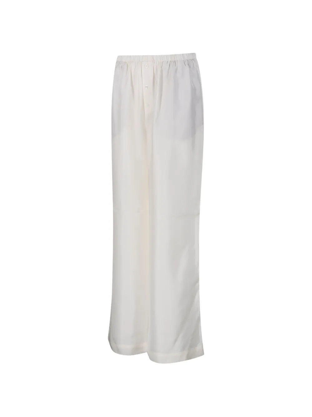 Pantaloni Rohe Elastic-Waist alb, realizati din matase, cu talie elastica si inchidere nasturi, croiala wide fit si tiv drept. Potriviti pentru sezonul primavara/vara. 100% matase.