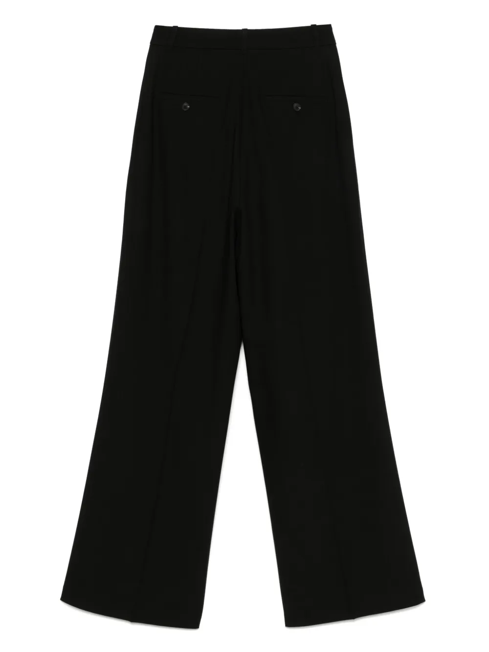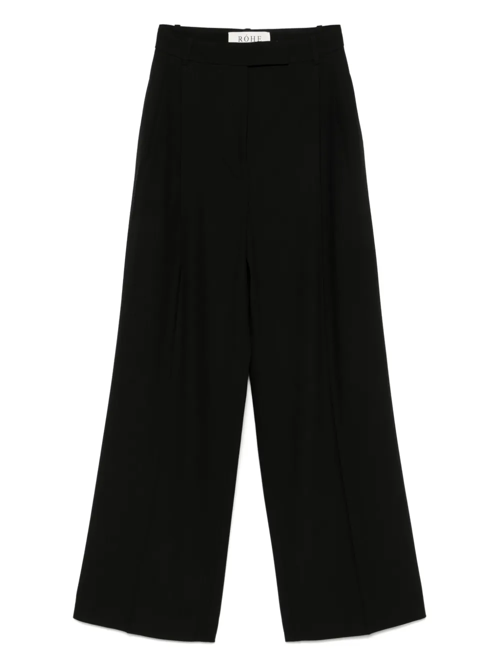 Pantaloni Rohe Wool negru, din lana, wide-fit, cu inchidere fermoar si nasture, buzunare diagonale, pliuri pe partea din fata si tiv drept. Potriviti pentru sezonul primavara/vara. 67% lana; 33% viscoza.