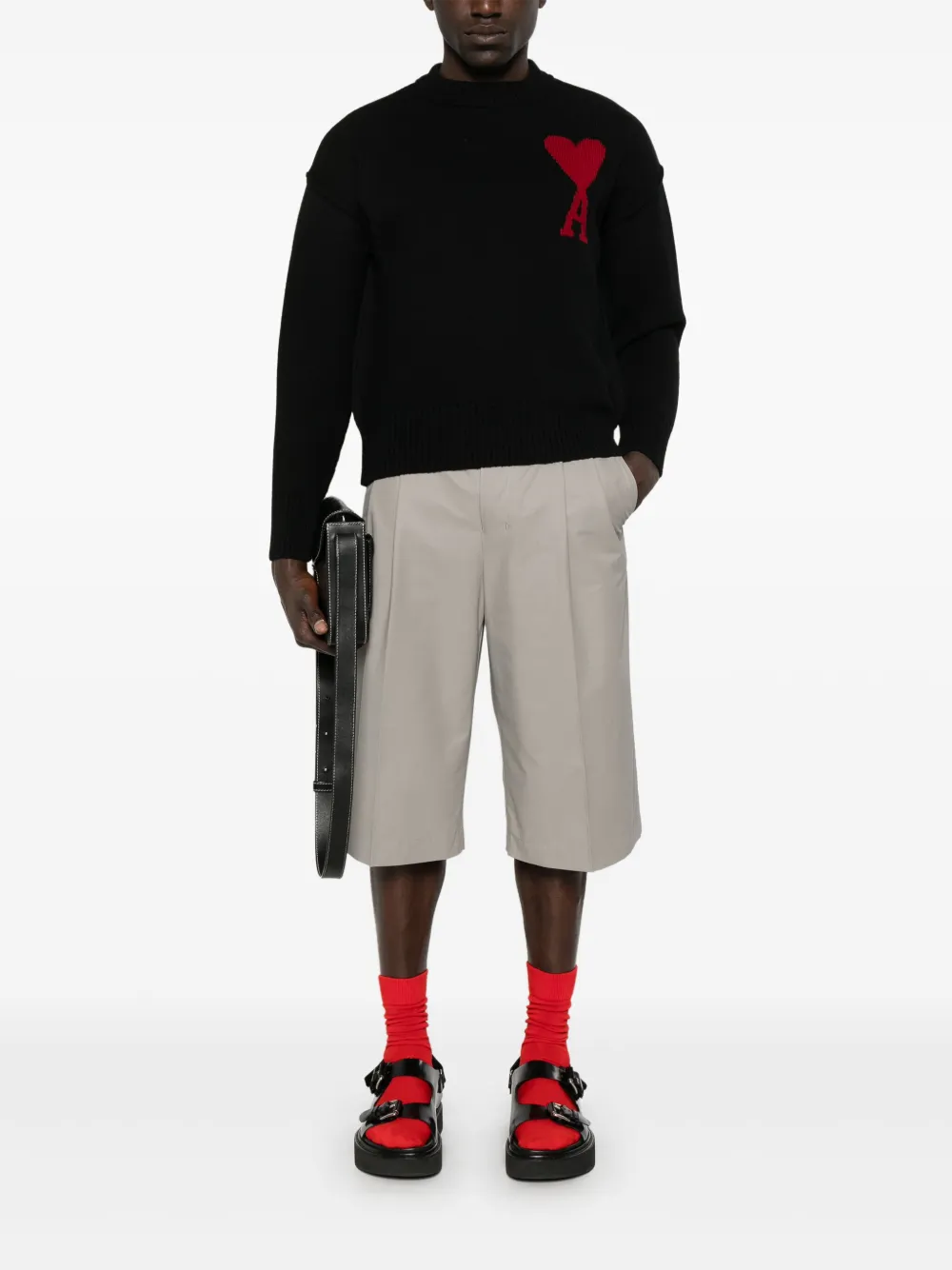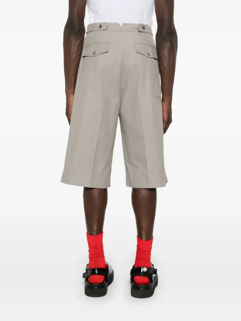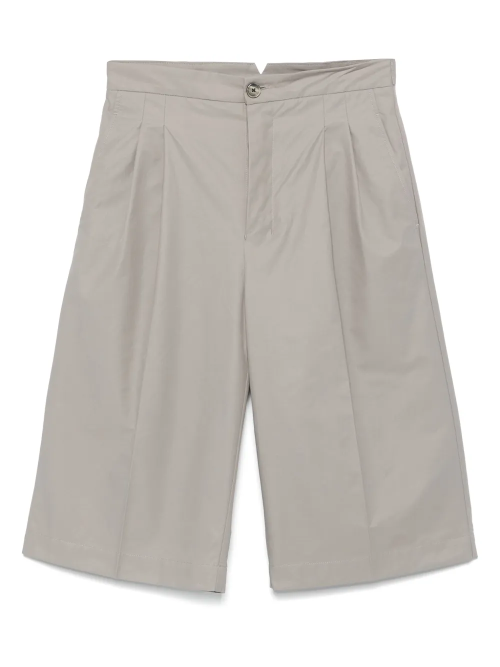 Pantaloni scurti AMI Paris pleat-detail gri, inchidere cu nasturi, cordoane in talie, diagonale pe laterale si buzunar la spate. 100% bumbac