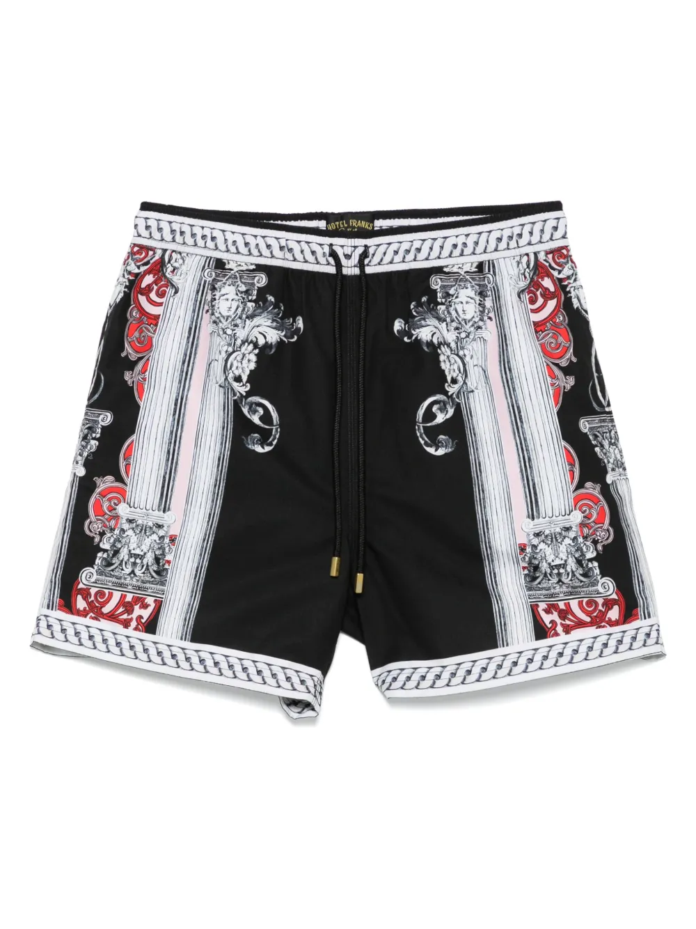 Pantaloni scurti Camilla Mark of Medusa negru, din poliester, reciclat, cu talie elastica si inchidere snur, buzunare diagonale, buzunar cu fermoar la spate, grafica „Mark of Medusa” imprimata si tiv drept. Potrivita pentru sezonul primavara/vara. 100% poliester reciclat.