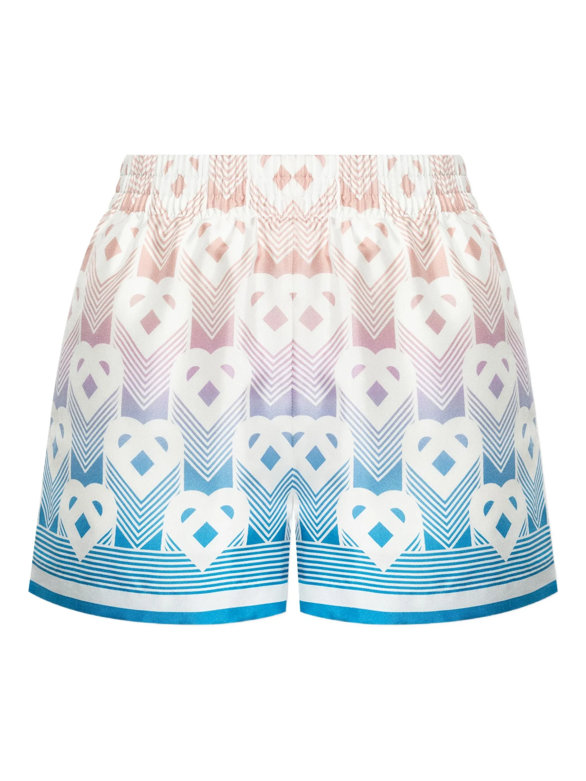 Pantaloni scurti Casablanca din matase premium, monogram-print, efect ombre, talie elastica.100% matase
