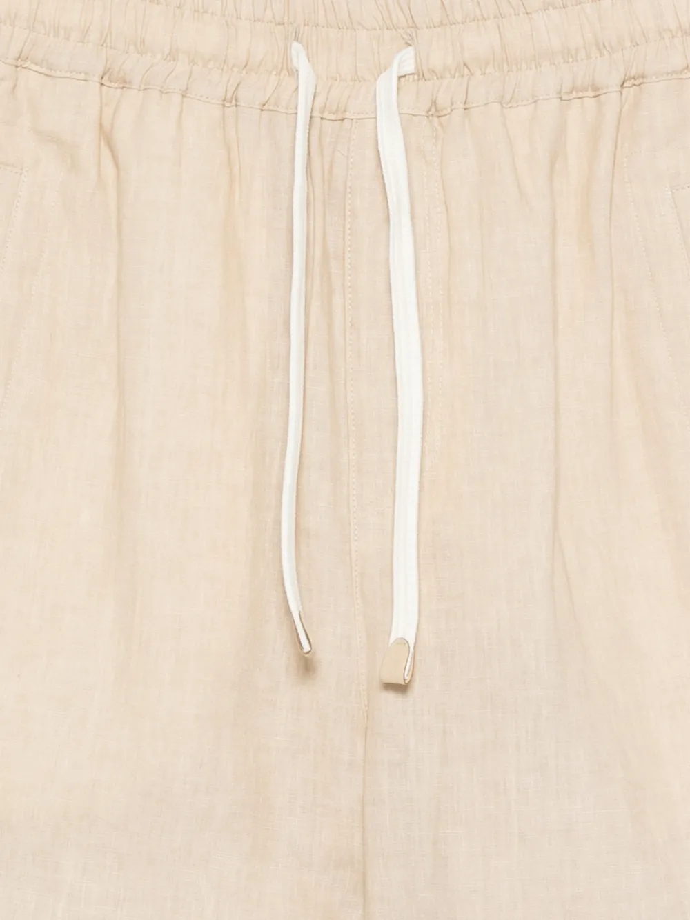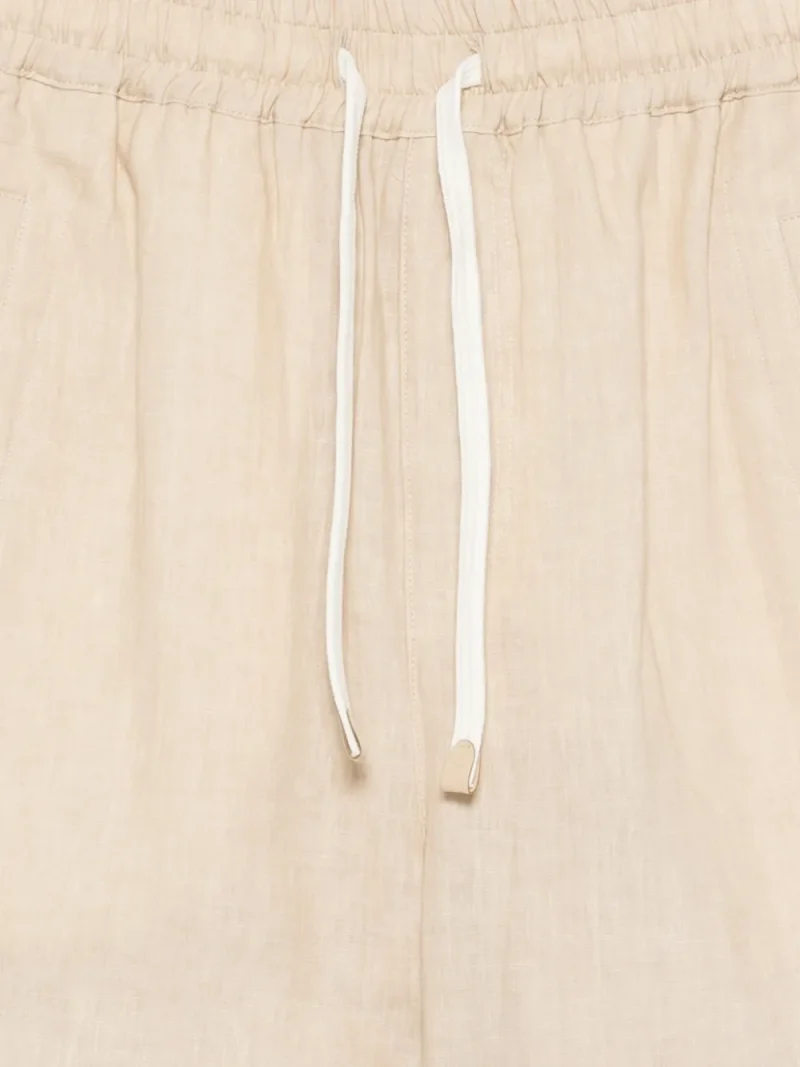 Pantaloni scurti Eleventy Drawstring Deck bej, realizati din in., cu talie elastica si inchidere snur, buzunare laterale si tiv drept. Potriviti pentru sezonul primavara/vara. 100% in,