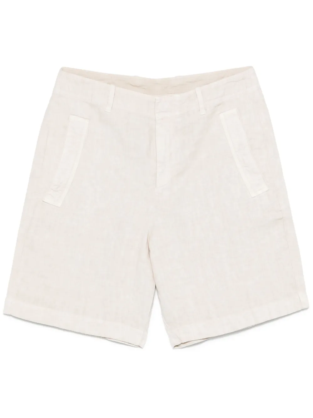 Pantaloni scurti Eleventy Linen ecru, din in cu inchidere nasture si fermoar, buzunare laterale, buzunare cu clapeta la spate, tesatura texturata si tiv drept. Potriviti pentru sezonul primavara/vara. 100% in.
