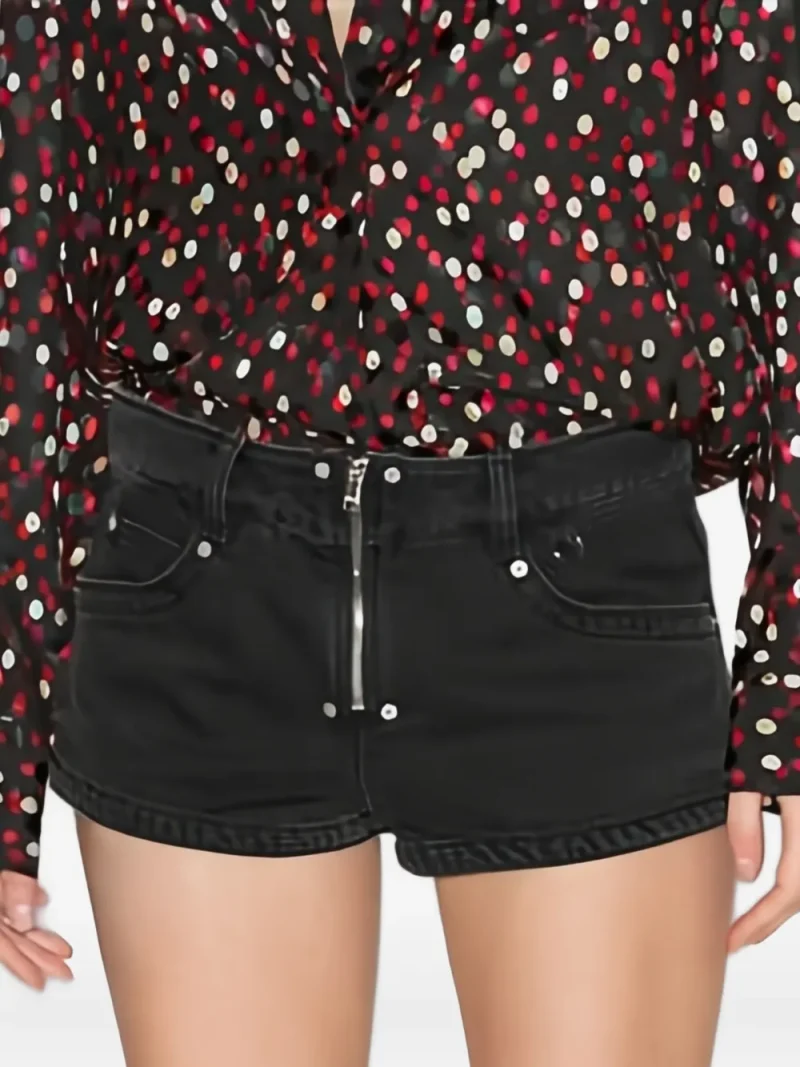 Pantaloni scurti Isabel Marant Hania Denim negru, mini, cu talie medie, inchidere cu fermoar vizibil, buzunare laterale, buzunare la spate, eticheta cu logo gravat cusuta la spate si tiv drept. Potriviti pentru sezonul toamna/iarna. 100% bumbac.
