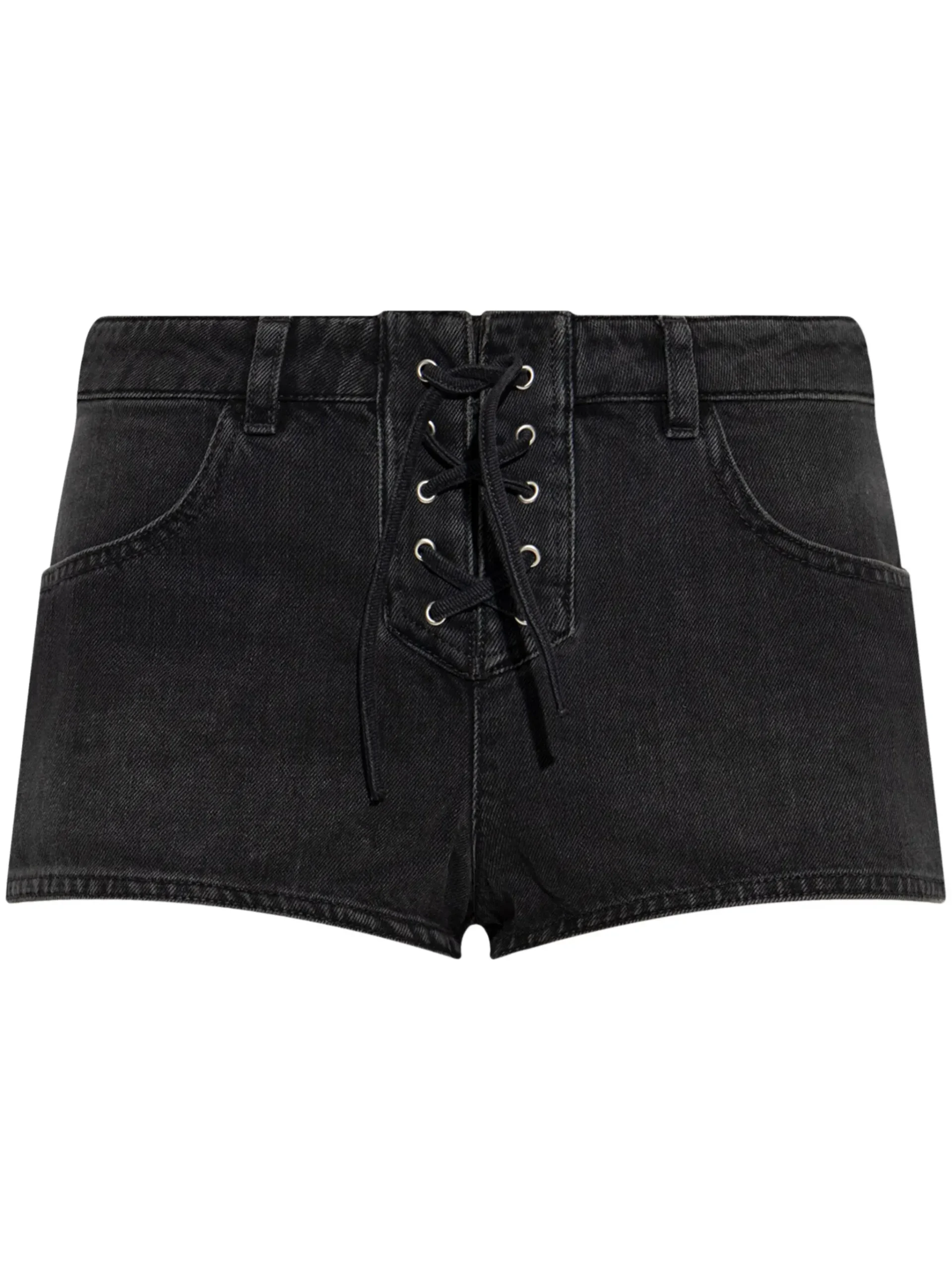Pantaloni scurti Isabel Marant negri , inchidere cu siret, buzunare laterale, tiv decupat. Potriviti pentru sezonul primavara/vara.100% bumbac