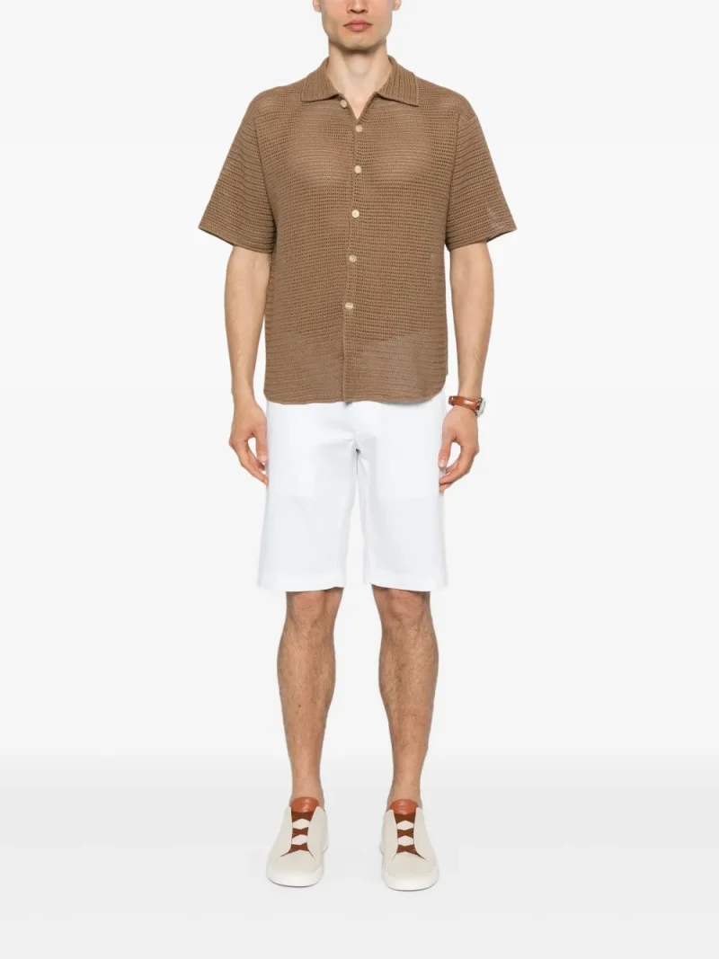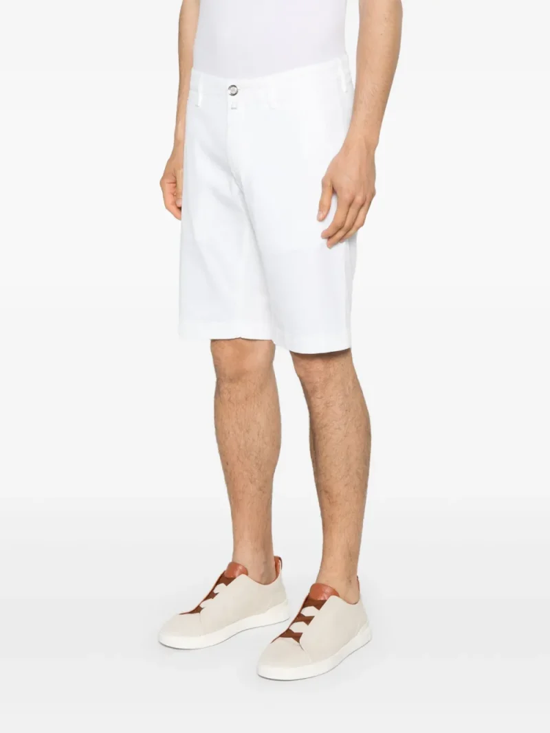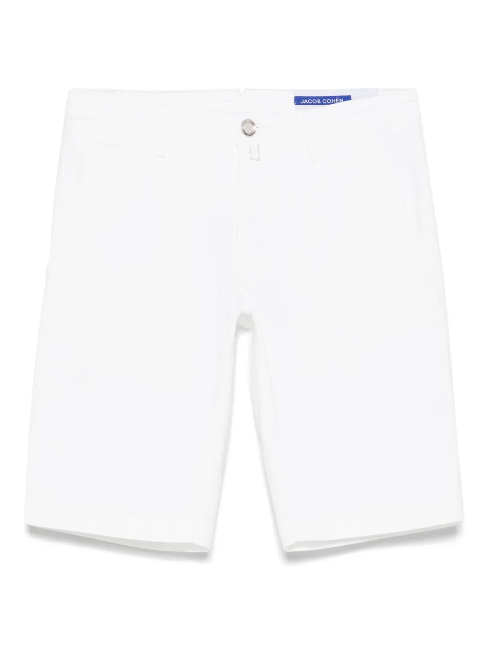 Pantaloni scurti Jacob Cohen Bob alb, din bumbac, cu inchidere nasture si fermoar, model „5-pockes”, eticheta din piele cu logo metalic la spate si tiv drept. Potriviti pentru sezonul primavara/vara. 55% bumbac; 42% lyocell; 3% elastan; 53% poliester; 48% bumbac.