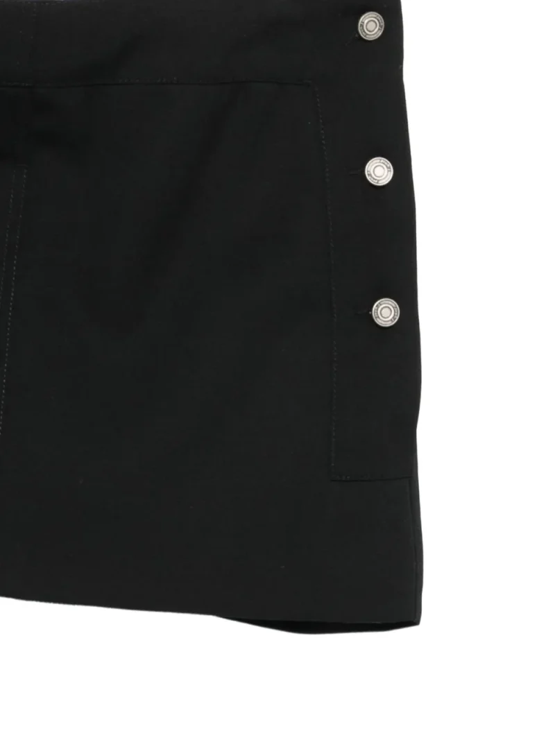 Fusta mini Juun.J Buttoned Panelled negru, design ce poate fi stilizat in doua moduri, cu inchidere nasturi metalici si fermoar, buzunare welt la spate si tiv drept. Potriviti pentru sezonul primavara/vara. 100% bumbac; 100% lana; 100% poliester.