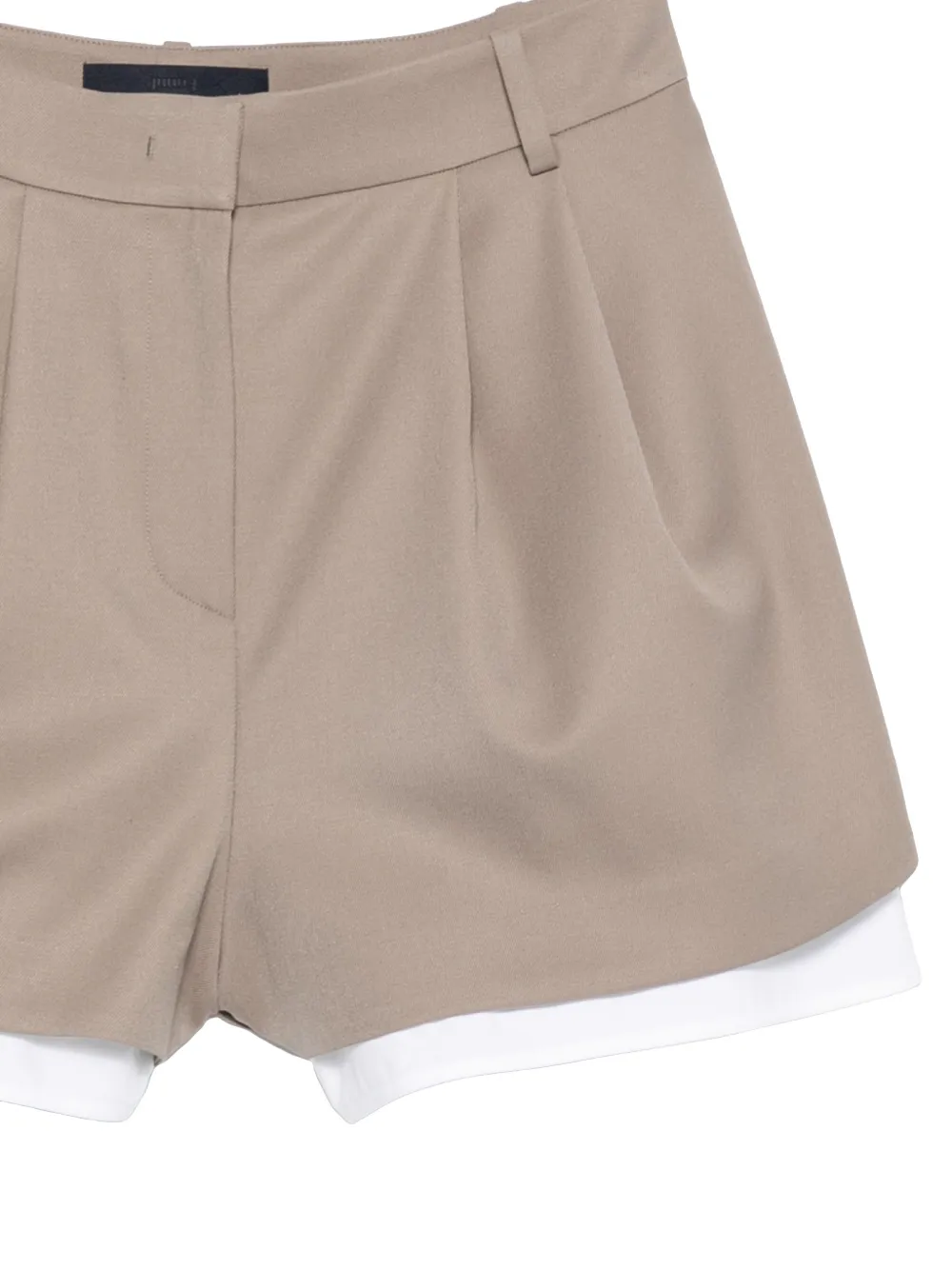 Pantaloni scurti JUUN.J Pleated bej, design in starturi, realizati din lana, cu inchidere clasica, buzunare laterale, pliuri decorative si tiv drept. Potriviti pentru sezonul primavara/vara. 60% lana; 40% poliester.