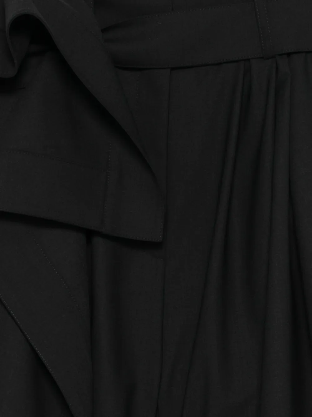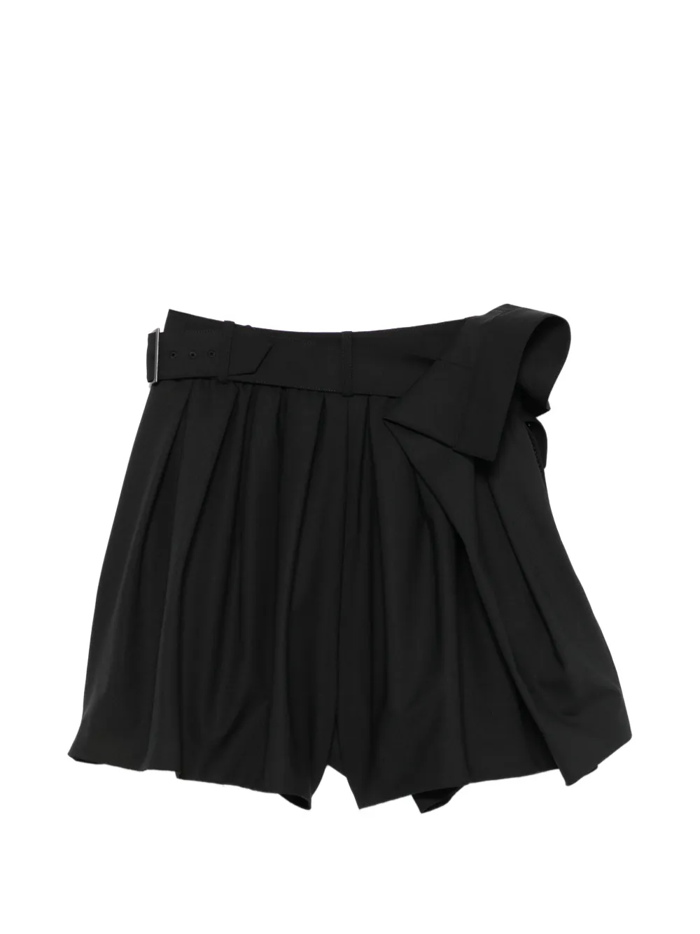 Pantaloni scurti Juun.J Pocket Pleated negru, design inspirat de podium, semi-wide, cu talie inalta, detalii plisate, cusaturi tonale si tiv drept. Potrivita pentru sezonul primavara/vara. 48% lana; 48% poliester; 4% poliuretan.