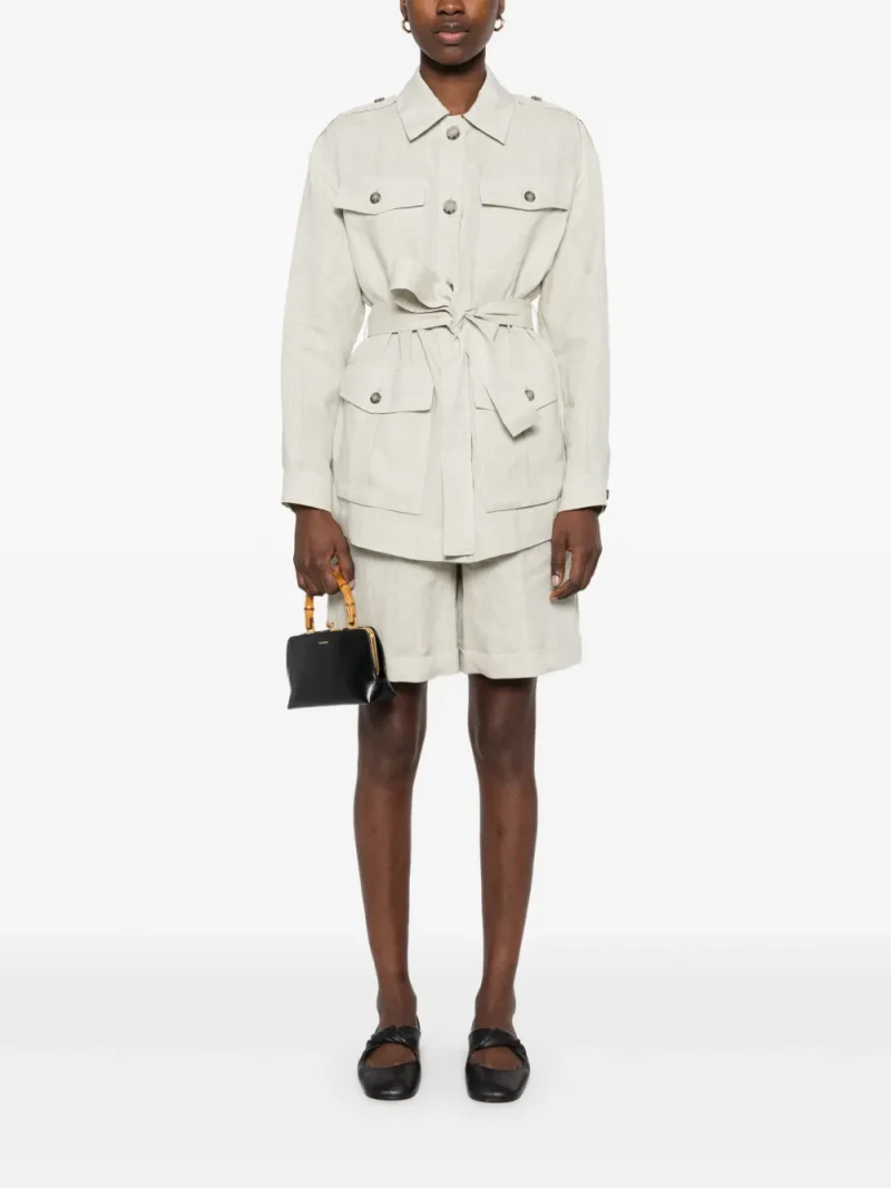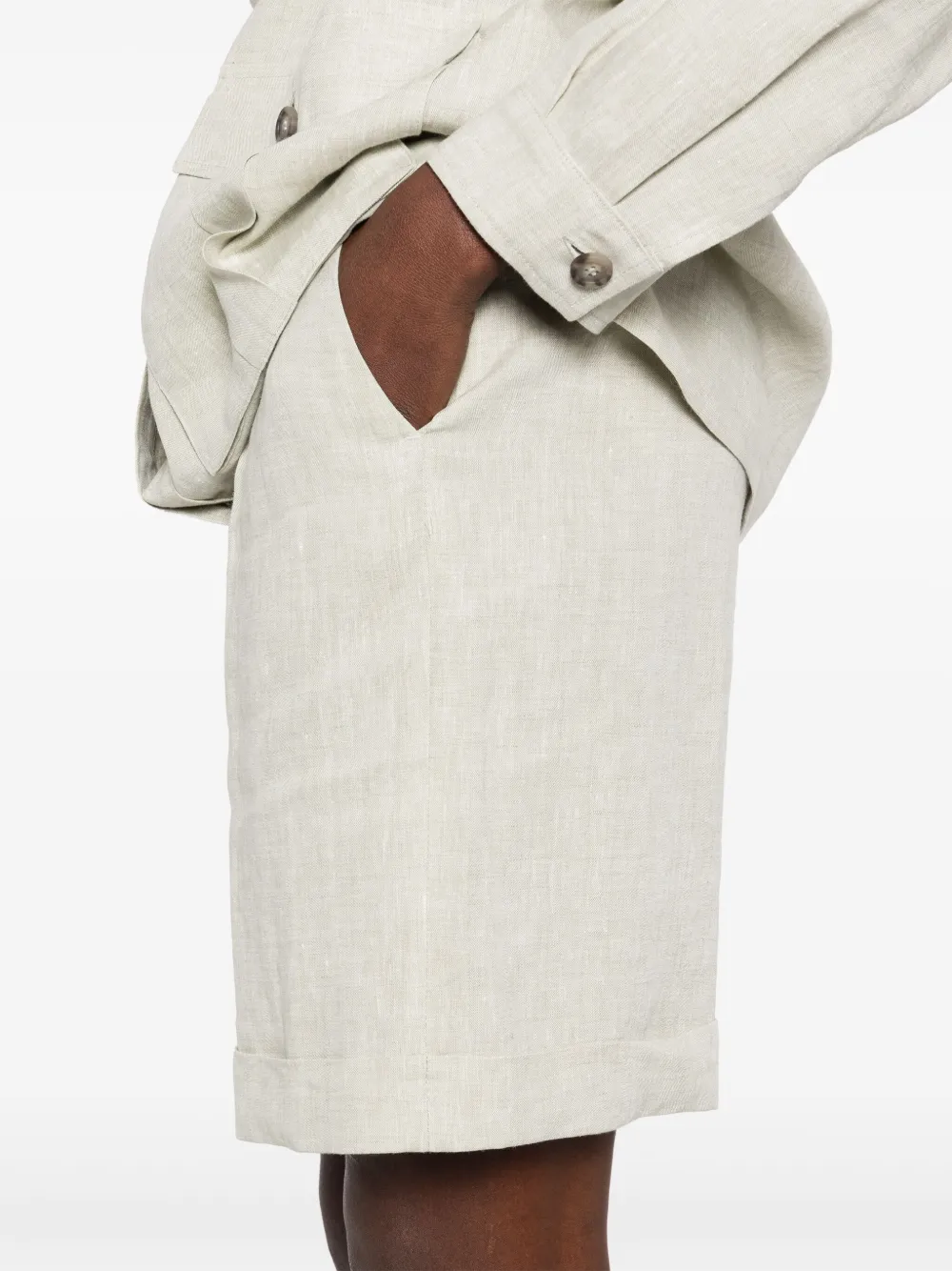 Pantaloni scurti Peserico Linen khaki, din in, cu inchidere clasica, buzunare laterale, buzunare la spate, oliuri decorative si tiv drept. Potriviti pentru sezonul toamna/iarna. 100% in.