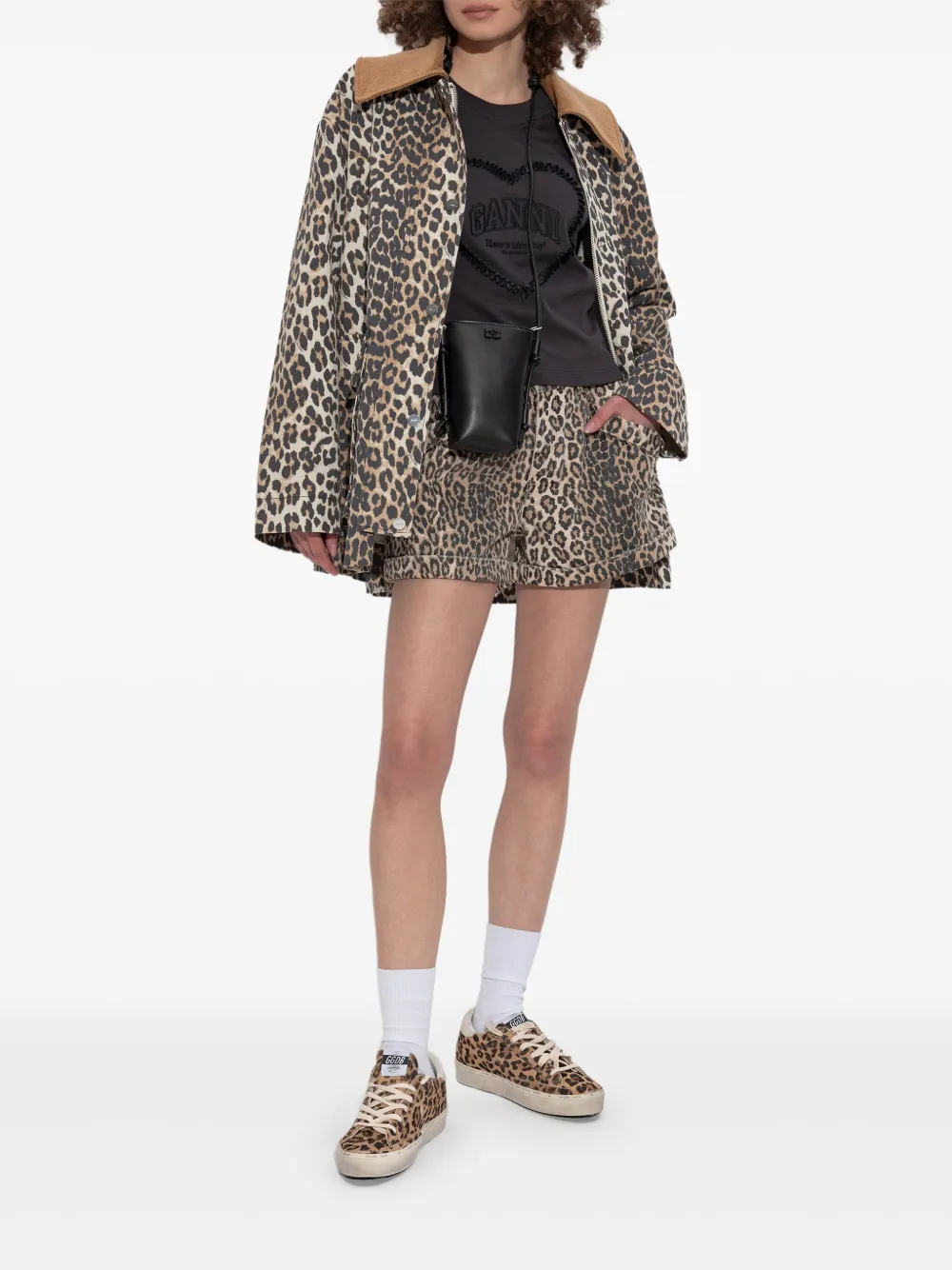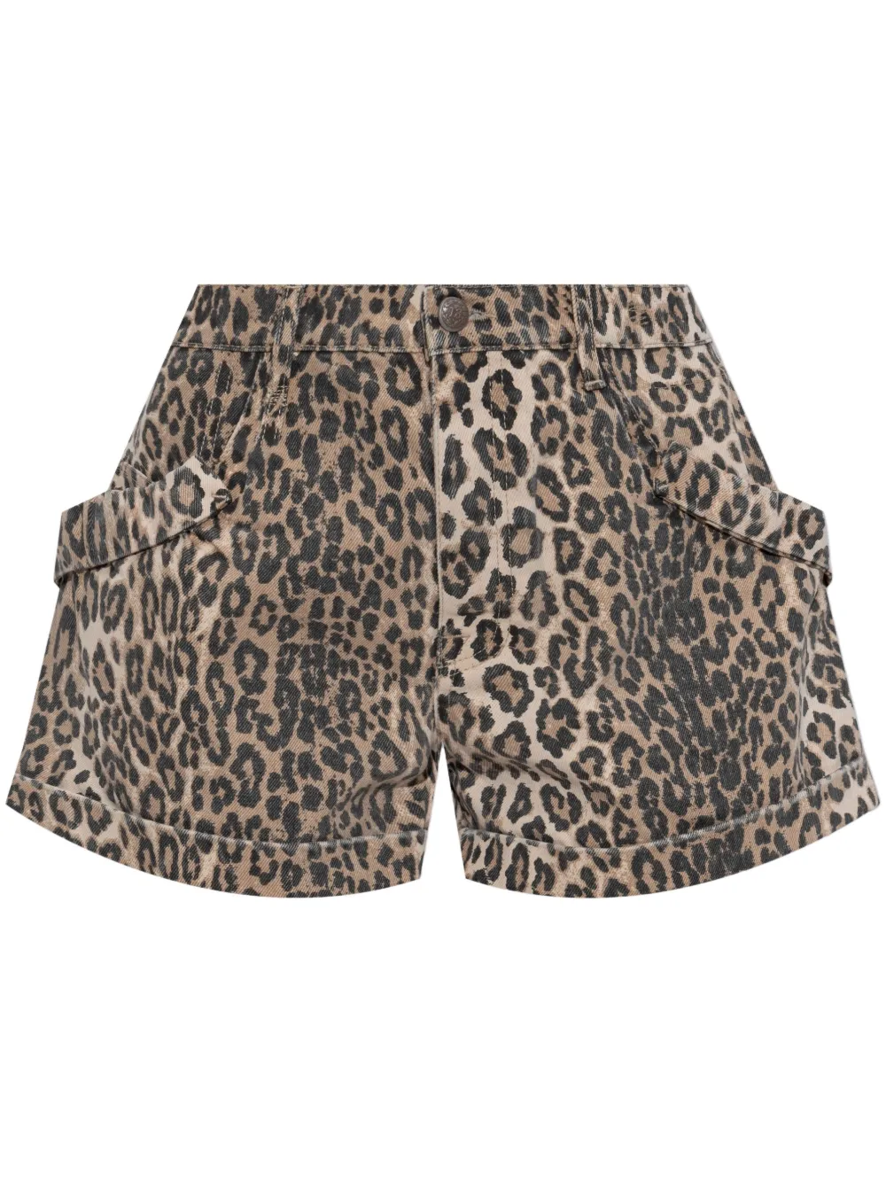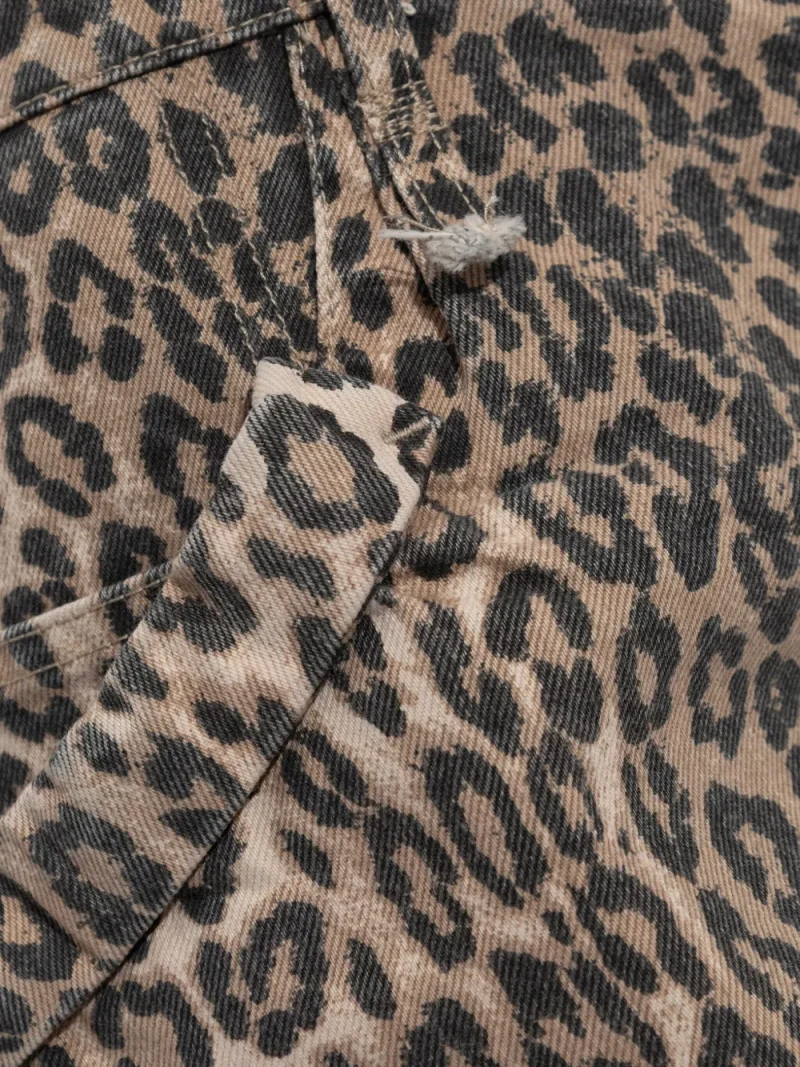 Pantaloni scurti R13 Pouch Pocket ecru, wide-fit, din bumbac denim, cu inchidere nasture si fermoar, grafica leopard imprimata, buzunare laterale si tiv rasucit. Potriviti pentru sezonul primavara/vara. 100% bumbac.