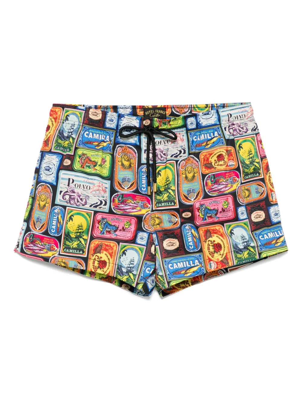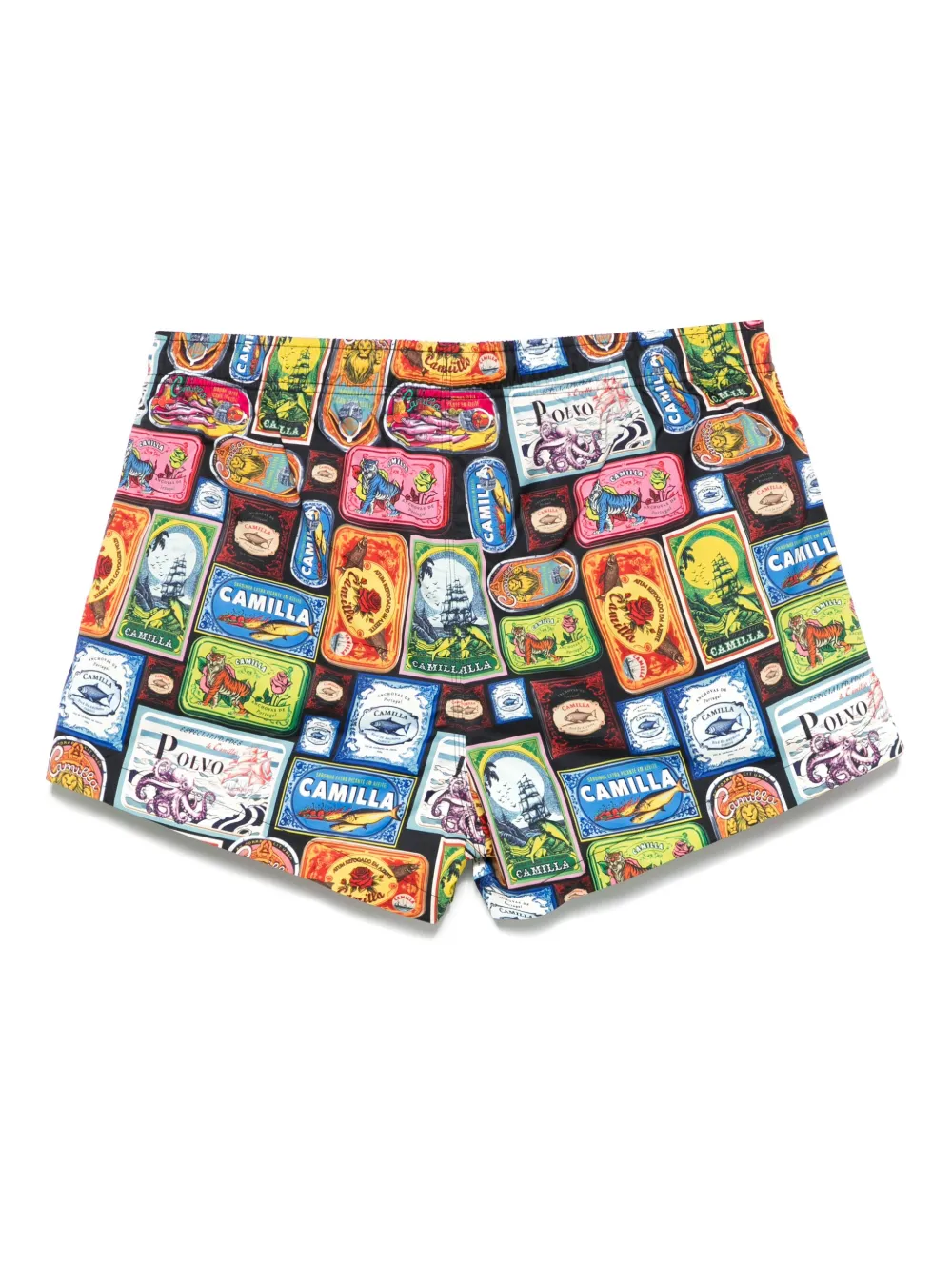 Pantaloni scurti Sal do Mar-Print negru, cu inchidere snur, grafcia multicolor imprimata si tiv drept. Potriviti pentru sezonul primavara/vara. 85% nailon; 100% poliester; 15% elastan.