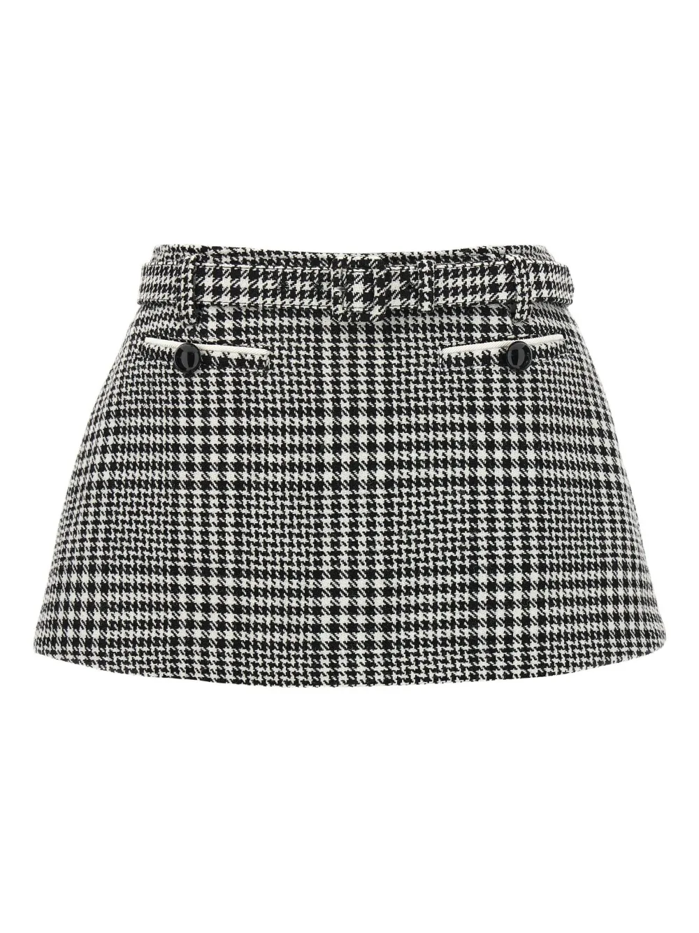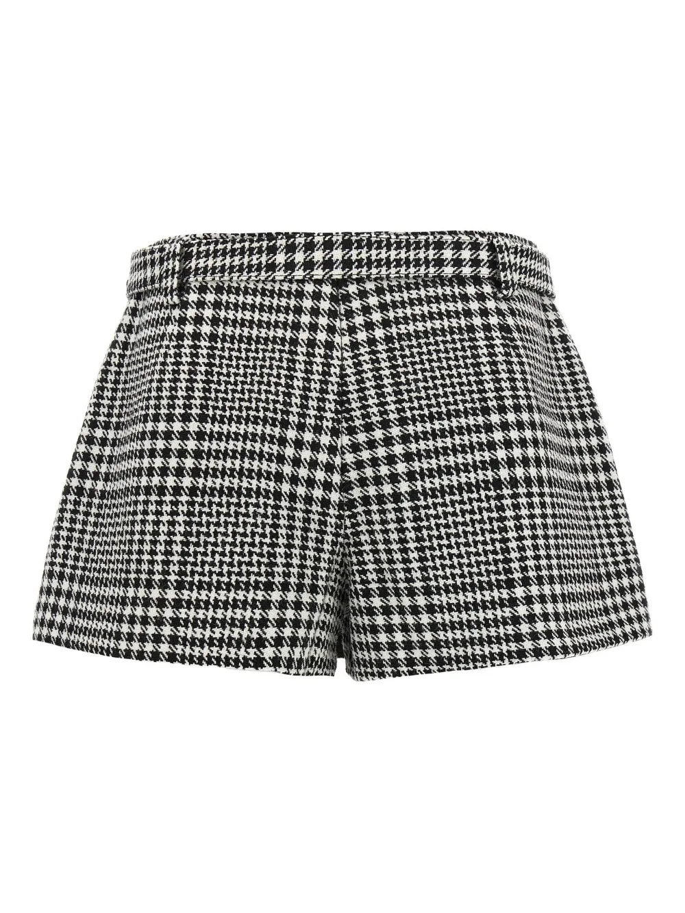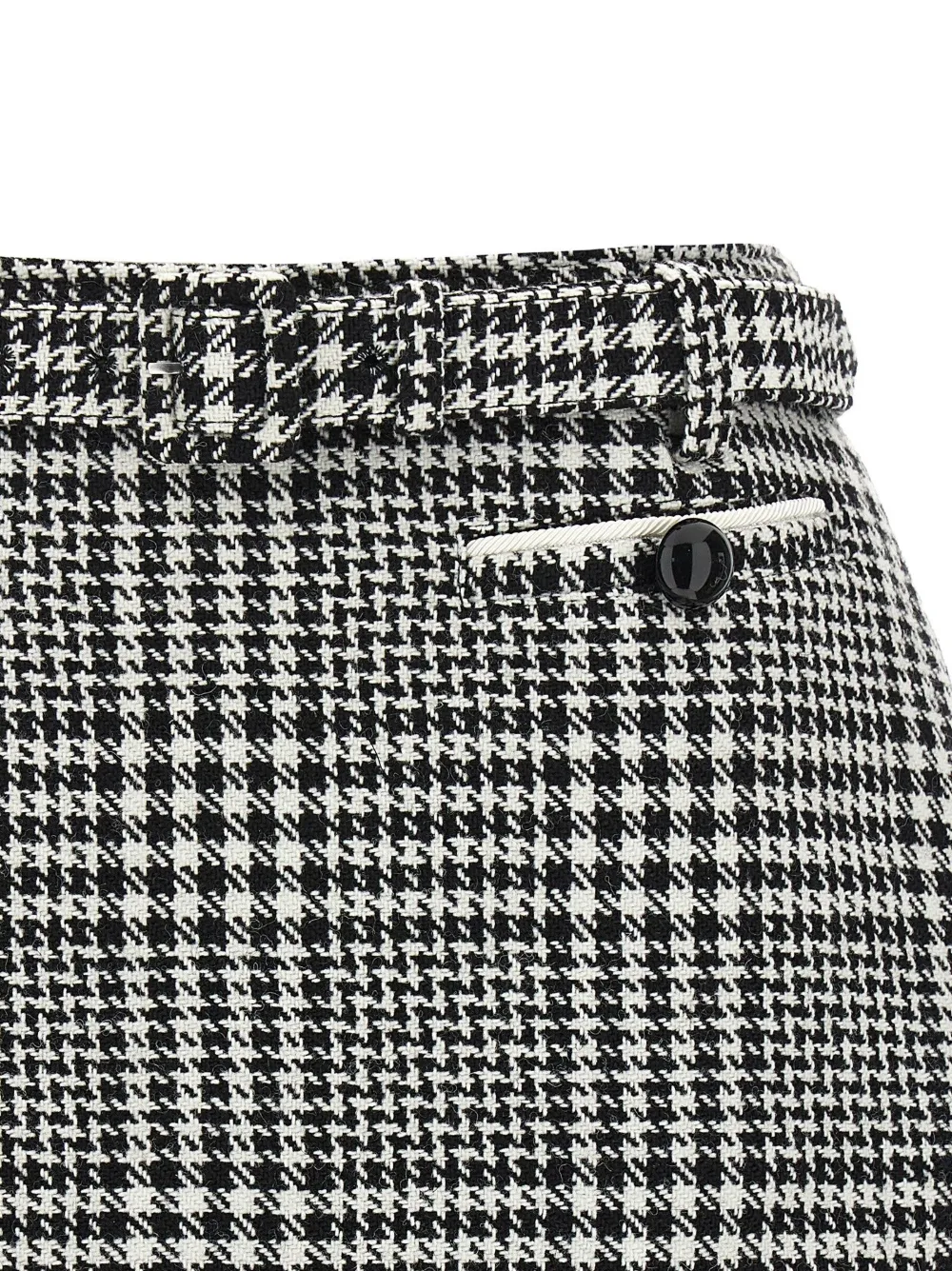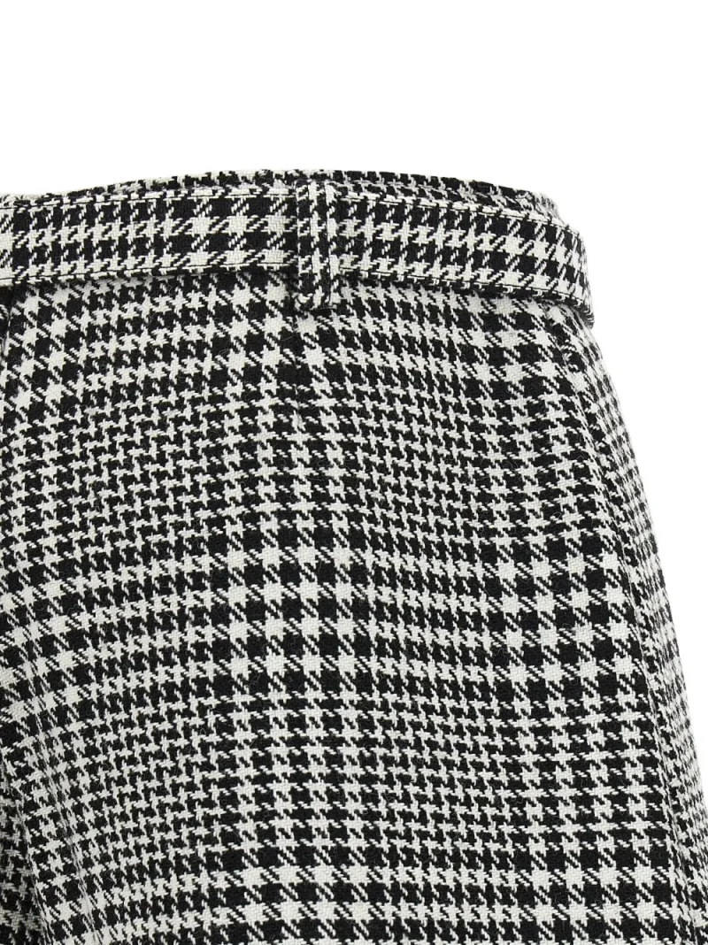 Pantaloni scurti Self-Portrait Houndstooth Boucle negru, cu aspect de fusta, buzunare laterale tip welt, curea in jurul taliei, grafica Houndstooth in tesatura si tiv drept. Potriviti pentru sezonul toamna/iarna. 40% lana; 60% poliester.